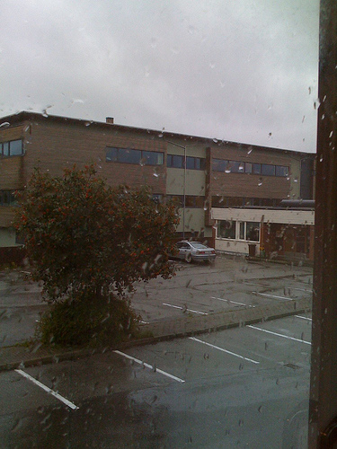… og regn lever ein greitt med når ein bare venner seg til det. Her er den obligatoriske allmennpåkledsla regntøy med god hette og gummistøvlar. Paraplyar kan ein bare gløyma, for dei vrengjer seg i vinden før det har gått ti minutt. I løpet av to helger som tilfeldig klimaflyktning har eg blitt minna om at nokre stadar i Norge er hausten årstida med høg blå himmel, klar luft som står stille, med ein snert av kulde, årstida då ein går i joggesko og ullgenser utan jakke over. Nokre stadar i Norge er hausten årstida då trea står fulle av gule, oransje og raude blad. Blada skiftar farge her og, men av og til er det bare snakk om timar før vinden har teke tak i dei og blese dei bort.