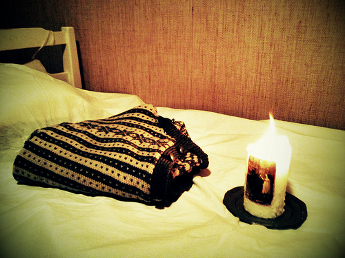 saman med brennande lys