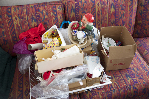 Kanskje vitnar min store motvilje mot å kasta noko som helst om det stikk motsette. Det står sin prøve å rydda eit hus etter nokon. Med stor sorg måtte me pakka tusen bøker i kassar og håpa at nokon ville bli glade i dei. For første gongen vart den veldig ryddige og fint organiserte heimen forvandla til ei blanding av antikvitetsbutikk, loppemarknad og slagmark. Bare det gjer litt vondt. Kven har hjarte til å senda gammalt handarbeid og lett gulna handhekla sengeteppe til Fretex? Ikkje eg i alle fall. Kasse på kasse vart pakka for å leggja i bilen.