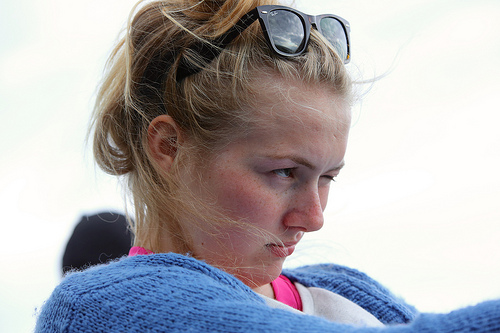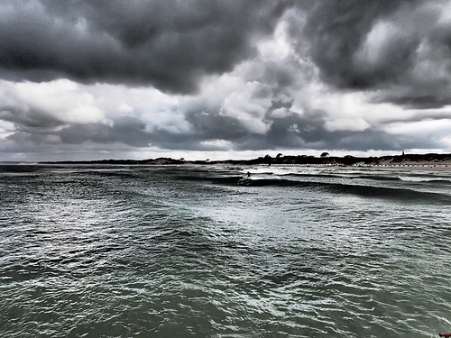Båten duva som eit lauvblad i bølgjene. Sjøen slo hardt mot botnen av båten, og nokre bølgjer slo heilt over han. Kapteinen valde ei alternativ rute, så turen vart ein time lenger enn planlagd. Etter eit kvarters tid begynte folk å kasta opp. Alle vart beordra til å bli sitjande i stolande. Betjeninga gjekk i skytteltrafikk. Nokre delte ut spyposar, tørre kjeks og kaldt vatn, medan andre gjekk rundt med svarte søppelsekkjer og samla inn brukte spyposar. Forbruket av posar var stort, og solidarisk nok sende folk ubrukte posar mellom stolane når nokon trong fleire enn dei sat inne med. Fire av oss seks kasta opp meir eller mindre heile turen på trass av reisesjuketablettane, og Oscar som måtte liggja nede i bilen hadde kasta opp han og. Når dette er sagt, så er eg full av beundring overfor dei som jobba på båten. Dei gjekk smilande rundt med plasthanskar og var folk til teneste. Minst ei av dei var ganske lysegrøn i ansiktet ho og, og måtte turar inn på toalettet innimellom. I høgtalaren takka dei folk for «godt sømanskap og tålmodighed» og forsikra om at det var «absolut ingen grund til engstelse, disse skibe er bygget nettopp for forhold som dette…» Då me gjekk av så vart setningen «Hope you have had a pleasant journey», erstatta med «memorable journey», og det var det absolutt. Sjølv med hovudet i spyposen kunne eg sjå litt av humoren i det heile. Eg har aldri vore med på noko som liknar litt ei gong. Hundrevis av menneske sat og spydde i takt, med det det måtte føra med seg av lydar… Men eg er ikkje heilt sikker på om me ikkje tek den tradisjonelle danskebåten i staden for catamaranen neste gong… Det var ein stor og udelt glede å kunna kjøra bilen på land etter turen, og senda medlidande blikk til dei som stod relativt intetanande på kaien i Kristiansand, klare til å kjøra ombord på ferga, medan beteninga på båten bar ut eit stort antal svarte søppelsekkjer…