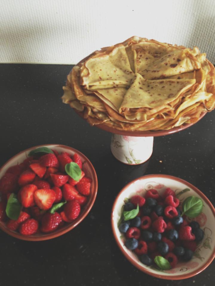 I dag har me hatt ein avslappande sundag, med ein roleg start på dagen med avislesing, kaffi og ei lang skriveøkt. Komande veke skal me på Korsveifestival, så i dag tok eg rett og slett gudstenestefri med godt samvit… Eg inviterte foreldra mine og Ingrid og Oddvar til gammaldags sundagskaffi. Begge gutane er ute og reiser, men Sunniva var heime. Serveringa vart tynne nysteikte pannekaker med is og friske bær, og i tillegg heimelaga lefser som eg kjøpte på eit gardsutsal i går. Av og til nyt eg å lata som om eg er ei litt flink husmor… Eigentleg veit eg at eg ikkje er det, men det er ein annan historie.