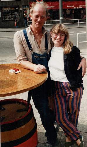 Men visst hadde eg sånn bukse då eg var tjuefire år og nygift, og på bryllaupsreise i dåverande Vest- Berlin, og vart fotografert med ein tilfeldig tyskar. Eg syntest til og med at buksa var ganske fin. Då me kom heim hadde eg muntleg eksamen på MF, og eg hugsar eg stilde med musefletter, piratbukse, Minnie Mus T-skjorte og svart silkejakke…