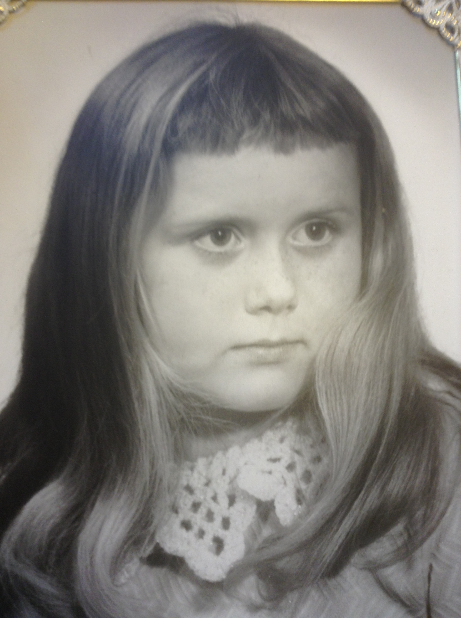 Me som omgir oss med barn, har kanskje godt av å tenkja på at djupast sett er dei akkurat som oss, dei har bare mindre kroppar og mindre erfaring, og djupast sett så er kanskje me som dei, me bare prøver å sjå ut som om me er store og flinke… Dette biletet, og eit som liknar på det, fekk eg med meg då me rydda hos onkelen min. Det eine har nok vore bestemor sitt, og så har det hamna hos han. Panneluggen er klipt av far, som sikkert syntest at det var fint å ikkje måtta klippa panneluggar alt for ofte… Det er teke våren før eg begynte på skulen, trur eg. Kragen var hekla av farmor. Før tenkte eg at det var koketteri når åttiåringar sa at dei var like inne i seg som dei var då dei var tjue. Nå har eg begynt å tru det. Sit eg ikkje her og påstår at inni er eg lik som då eg var fem… Eg vil gjerne høyra kva andre tenkjer om dette.