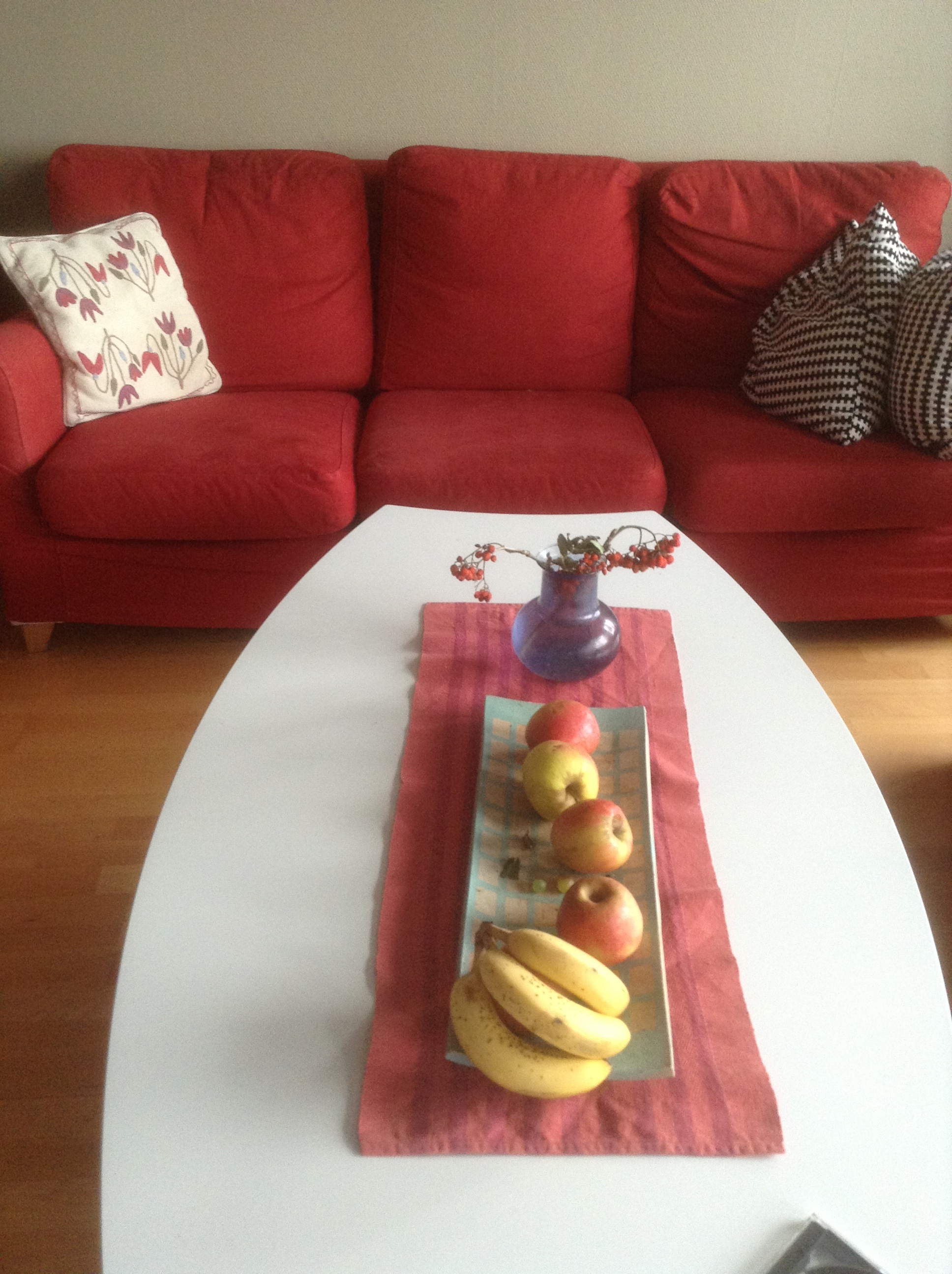 Og haustfargane er på plass i stova som elles er litt sånn ufullkomen rufsete, akkurat som vanleg.