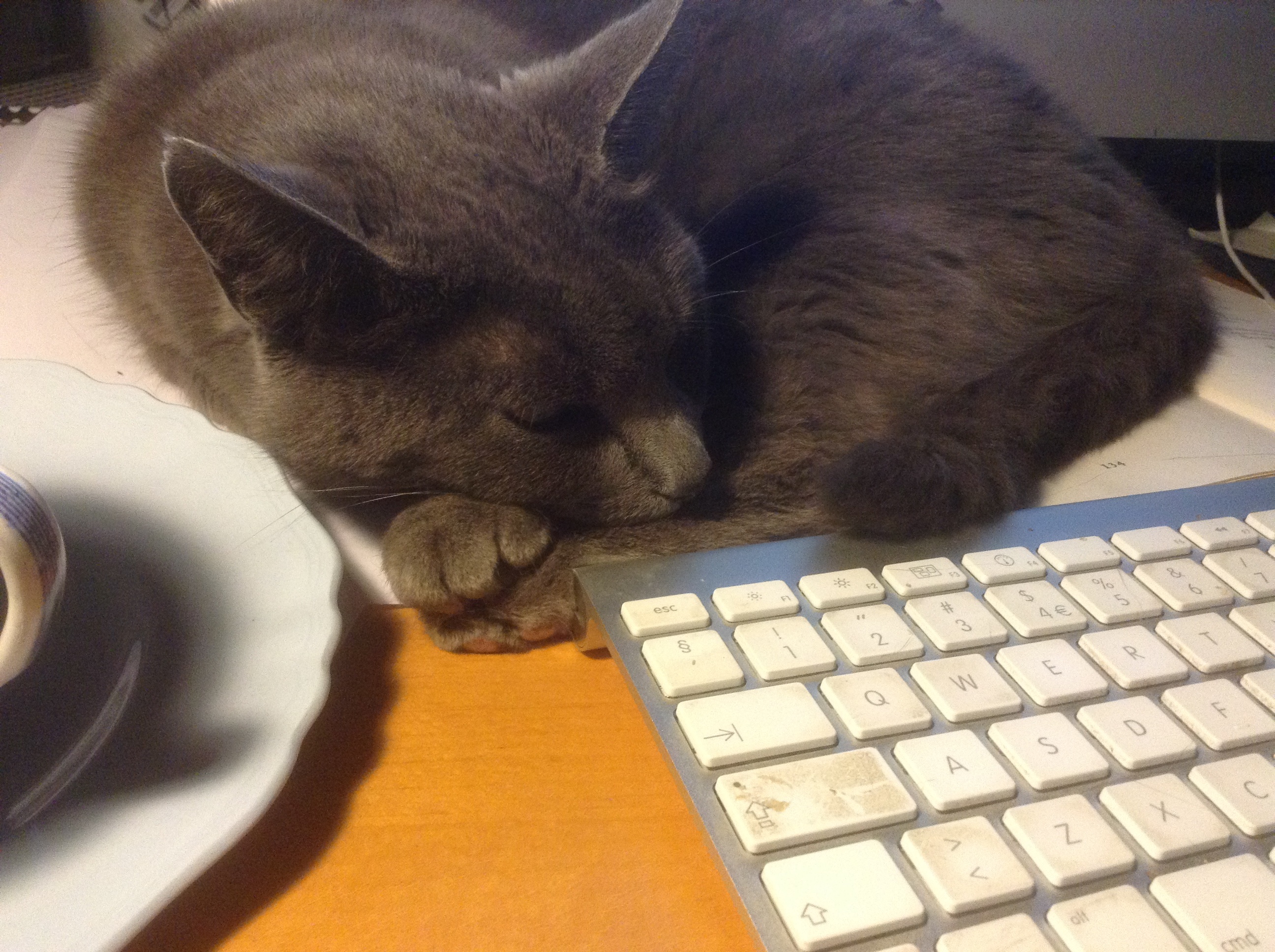 Her er tastaturkatten min. I dag hadde me eit raskt besøk av Torhild som var på kurs her i byen… Kjempetriveleg.