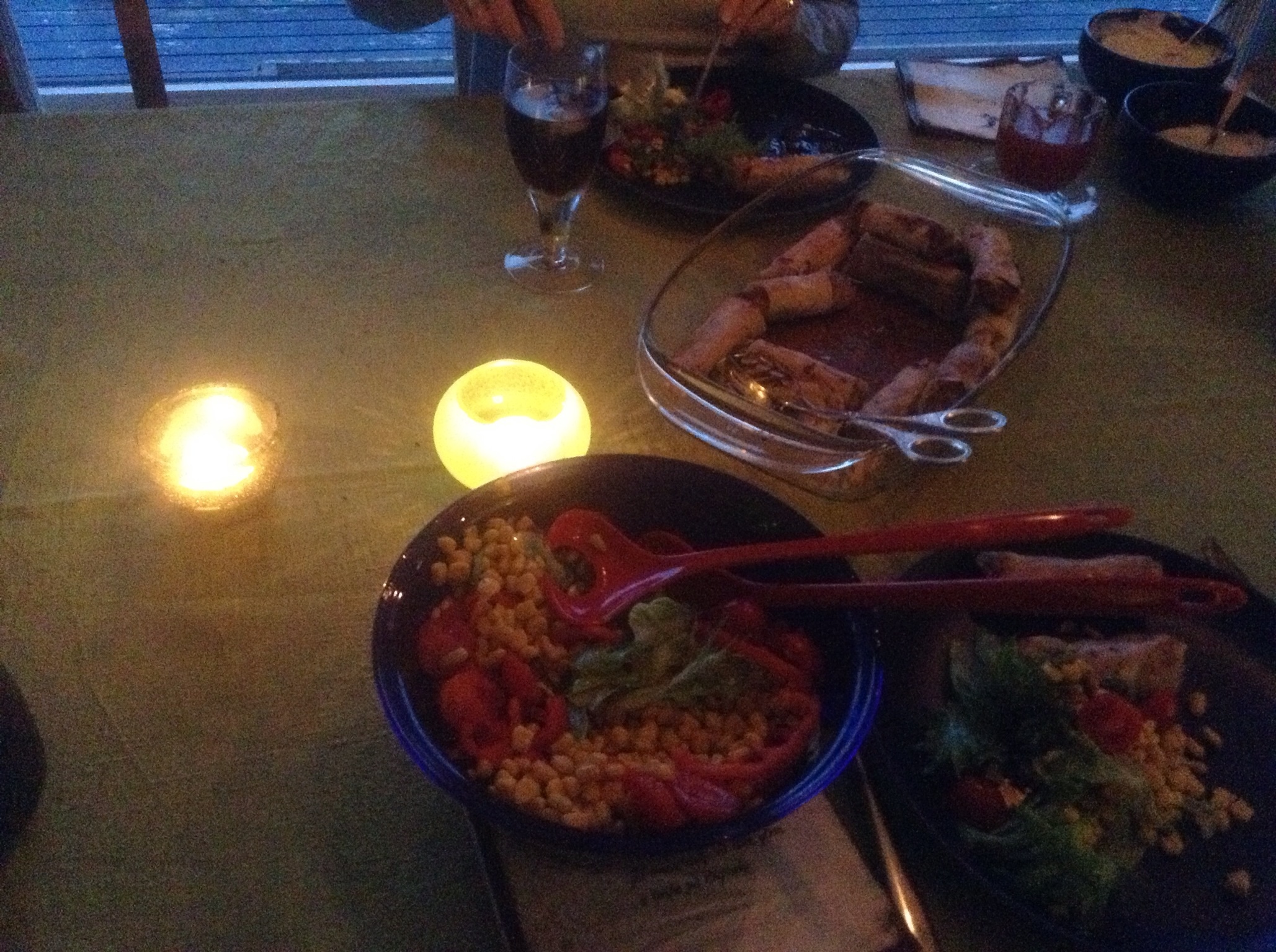 Vel heime hadde eg lova Ingrid å koma innom henne for å drikka ein kopp kaffi og lesa gjennom ei oppgåve ho hadde skrive i teaterhistorie. Til slutt fekk eg det ganske travelt. Eg hadde bestemt meg for å laga heimelaga ripsis til dessert, og innimellom var det planen å få vaska og støvsugd litt. Det var ganske tidkrevande å laga vårrullane, mellom anna fordi det eg hadde kjøpt på Vigrestad viste seg å ikkje vera rispapir, men ein slags deig kjevla i tynne flak i ein stor stabel oppå einannan. Deigen var veldig lett å jobba med, men steikinga i steikeomn tok mykje lenger tid enn det som stod i oppskrifta, truleg på grunn av at dette var deig og ikkje papir. Dei vart ikkje så fine, men smakte ganske godt. Eg fekk melding frå to av ungane mine som fortalde at dei ville koma på besøk neste dag for å eta vårrullar dei og…