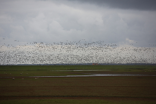 Nå sit eg her med dikta mine og er i ferd med det som på revyspråket blir kalla «killing your darlings». Det vil seia at eg prøver å sila ut det som er uferdig og ikkje bra nok… Av over 130 dikt sit eg nå att med 83. Kanskje det er litt mange det og. Nå skal eg prøva å systematisera det eg har og jobba litt med språk og bilete. Tankane mine flyg omtrent som fuglane ved diket over til Rømø som det er bilete av over her. Eg har vore ein tur på skulen for å gjera klar til oppstarten i morgon, så har me vore på gudsteneste og ete middag hos mor og far. Ferien har vore fin. Det er alltid litt vemod over at ein ferie er slutt og at ein sommar definitivt er over. Likevel liker eg hausten, den skarpe lufta, dei mørke kveldane og dei fine fargane. Eg har ein katt på skrivebordet som er underernært på kos, han dyttar snuten sin borti hendene mine medan egskriv og prøver å vippa dei vekk frå tastane. Kanskje eg heller burde klappa katten…