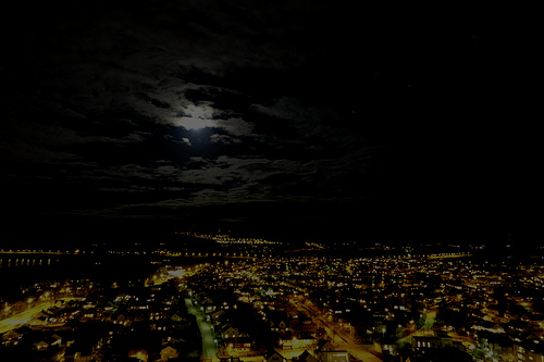 For å fullføra den døgnopne dagreportasjen, tek eg med eit «nattbilete» av Jæren, teke for kort tid sidan frå toppen av høghuset. Leif sin skule har Comeniusbesøk og har hatt gjestene med på middag i restauranten i kveld.
