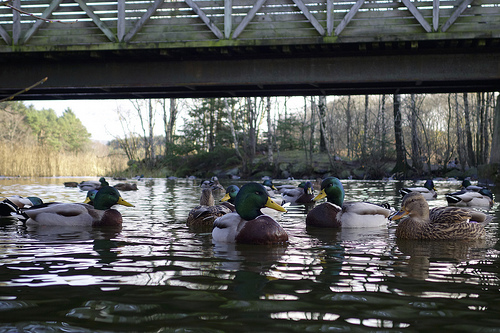 Då eg såg dette flotte biletet av ein flokk ender i Frøylandsvatnet, som Leif tok sist helg, kom eg til å tenkja på stressmeistring. Eg høyrde nokon bruka biletet av ei and som forklaringsmodell for å bli utbrend. Ein ser ei and som tilsynelatande duppar stille og fredeleg i vassflata, men dersom ein såg under vatn, ville ein sjå føtene arbeida febrilsk for å halda på tilstanden. Det er noko der med at det ikkje alltid er så lett å kopla på og av når ein jobbar med ungar og kreative prosessar. Nå er ikkje dette ei vedkjenning av at eg er i ferd med å klappa saman, snarare ein fri digresjon. Utgangspunktet var at eg likte biletet veldig godt…