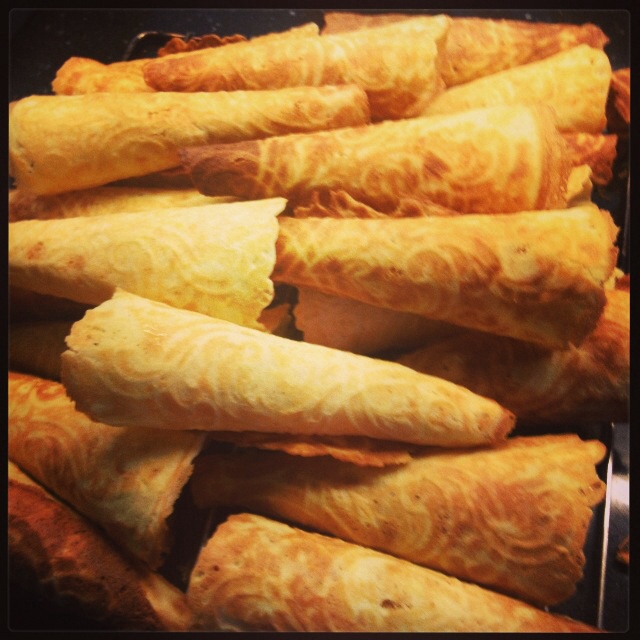 I dag vakna eg til den finaste snømorgonen og soloppgangen. Sidan eg hadde bestemt meg for at denne dagen hadde eg lyst til å kosa meg med julebakst, så sette eg i gang med ein omgang krumkaker rett etter morgonkaffien, og straks lukta det godt av heimebakt på kjøkkenet.