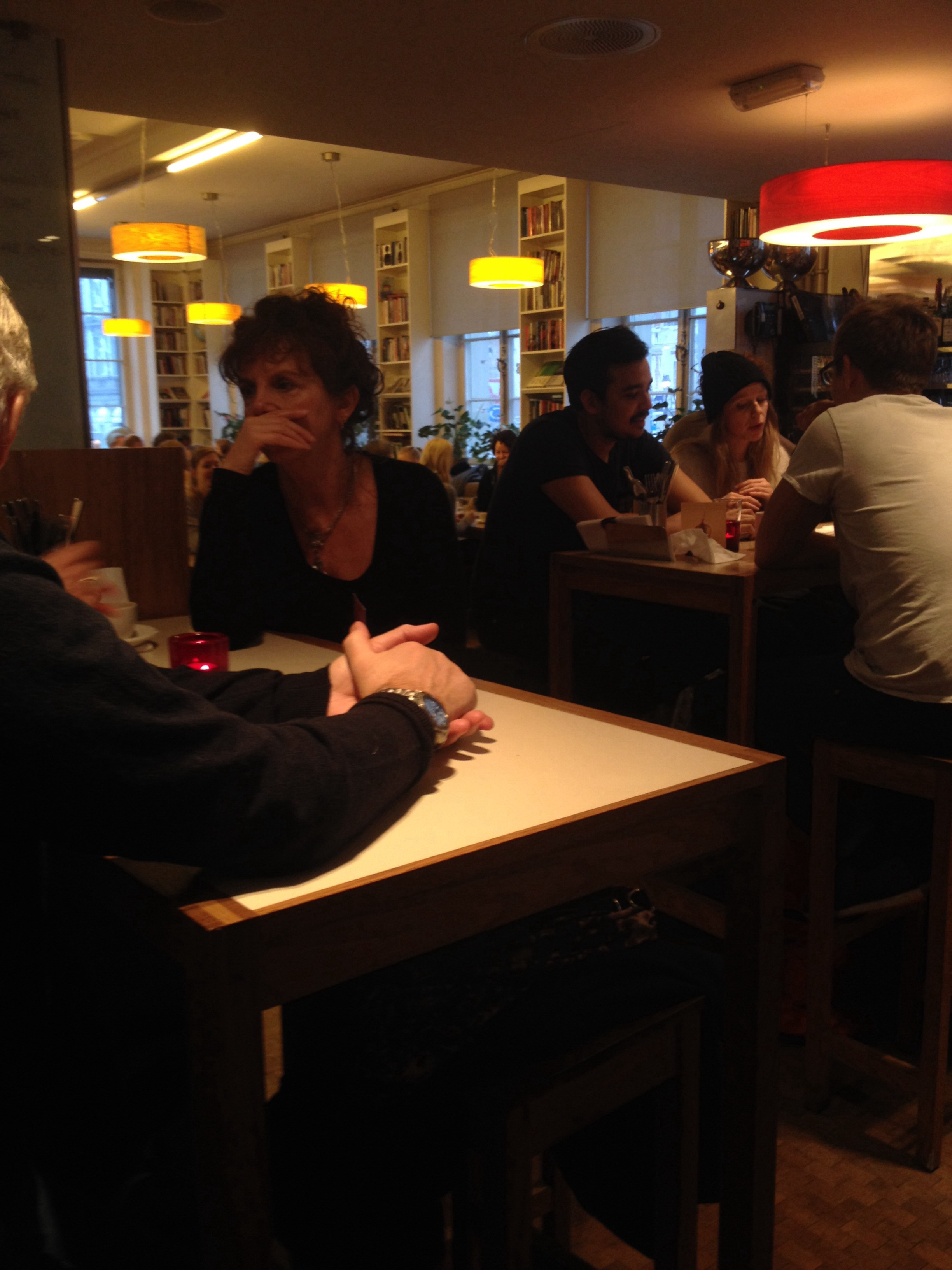 Me gjekk til Litteraturhuset, veldig koseleg plass. Heilt sidan eg ikkje fekk smakt varm kakao med chili i København, har eg drøymt om å drikka det på ein koseleg kafé ein kald dag. Dessverre var kakaoen på Litteraturhuset utan chili, så då fekk det bli slik. Veldig koseleg plass. Me kjøpte med oss nokre bøker før me gjekk vidare.