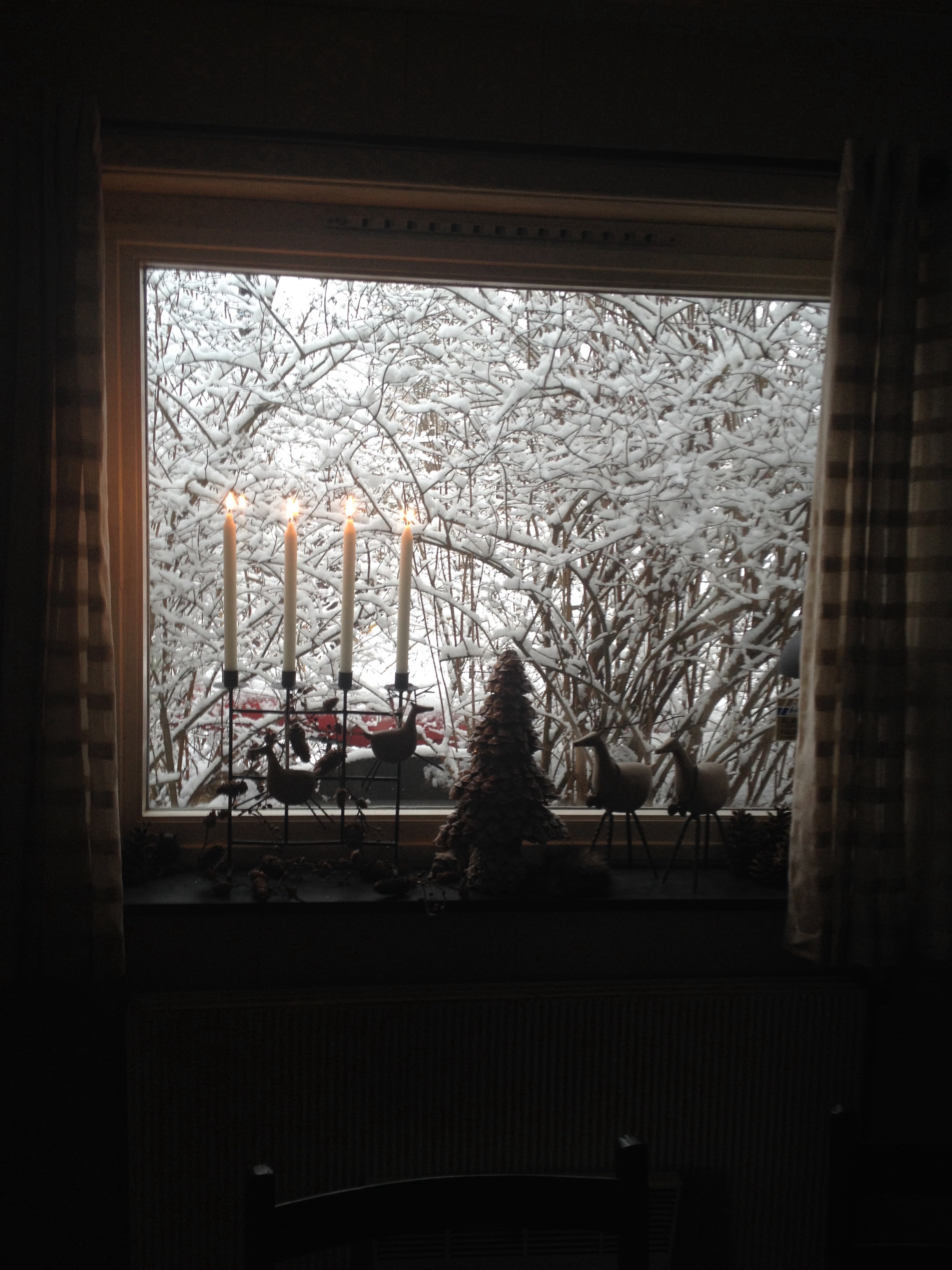 Ja, det er Eva Mari som har pynta vindauget sitt så fint. Det er reinsdyr, ikkje hestar. 🙂