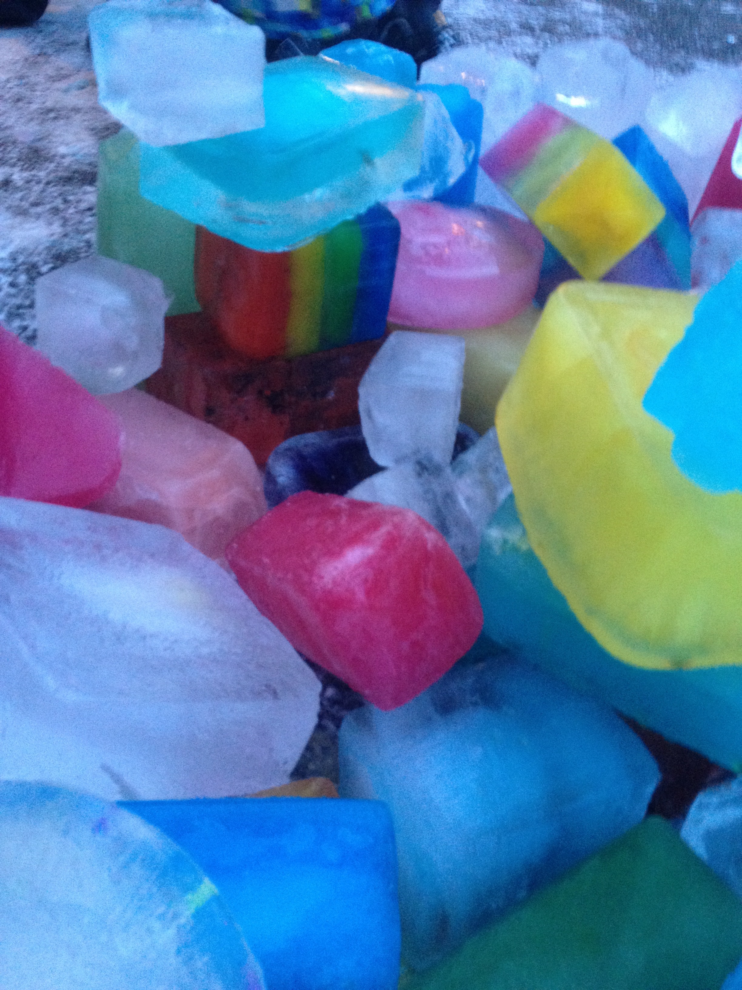 Og veret har vore kaldt nok til at isskulpturane me laga av isblokker frå fryseboksen på tysdag, har fått leva sitt eige liv, heilt til dei vart tekne av smeltingsdøden i dag…