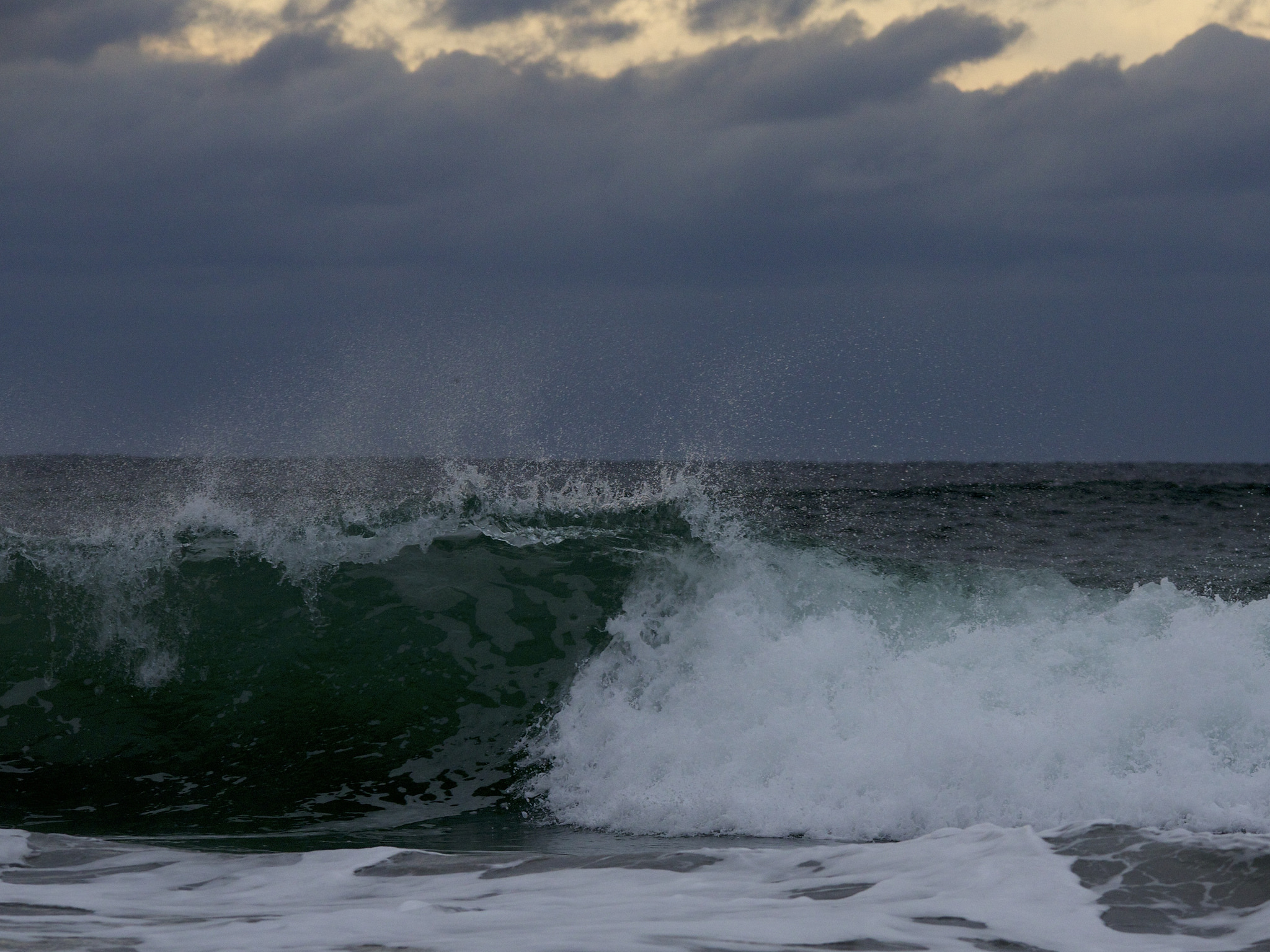 Me pakkar oss inn i fleire lag med ull og vindtette klede, og reiser ned til stranda i håp om å få nokre fine stormbilete. Stormen har løya, og det mest dramatiske er stranda mest ikkje er til å kjenna att. Alt av laus sand er blese vekk, og stranda er hardpakka, til dels frosen, våt sand med stubbar av siv og marehalm stikkande opp. Linja ved sanddynene er delvis som skoren med kniv, sjøen har tydelegvis gått heilt opp til sanddynene. Framleis går sjøen lengre opp enn vanleg, og stranda som vanlegvis er brei, mjuk og sandete er nå smal, hardpakka og heilt plan. Det kjennest nesten som å gå på havbotnen, og ein ventar nesten på at ei stor bølgje skal skylja inn over oss som er modige nok til å gå der. Det er frålandsvind slik at bølgjene som slår mot land møter vinden og nesten blir slått litt tilbake. Havet er stort, kaldt og flaskegrønt, og steinane i strandkanten er delvis frosne.