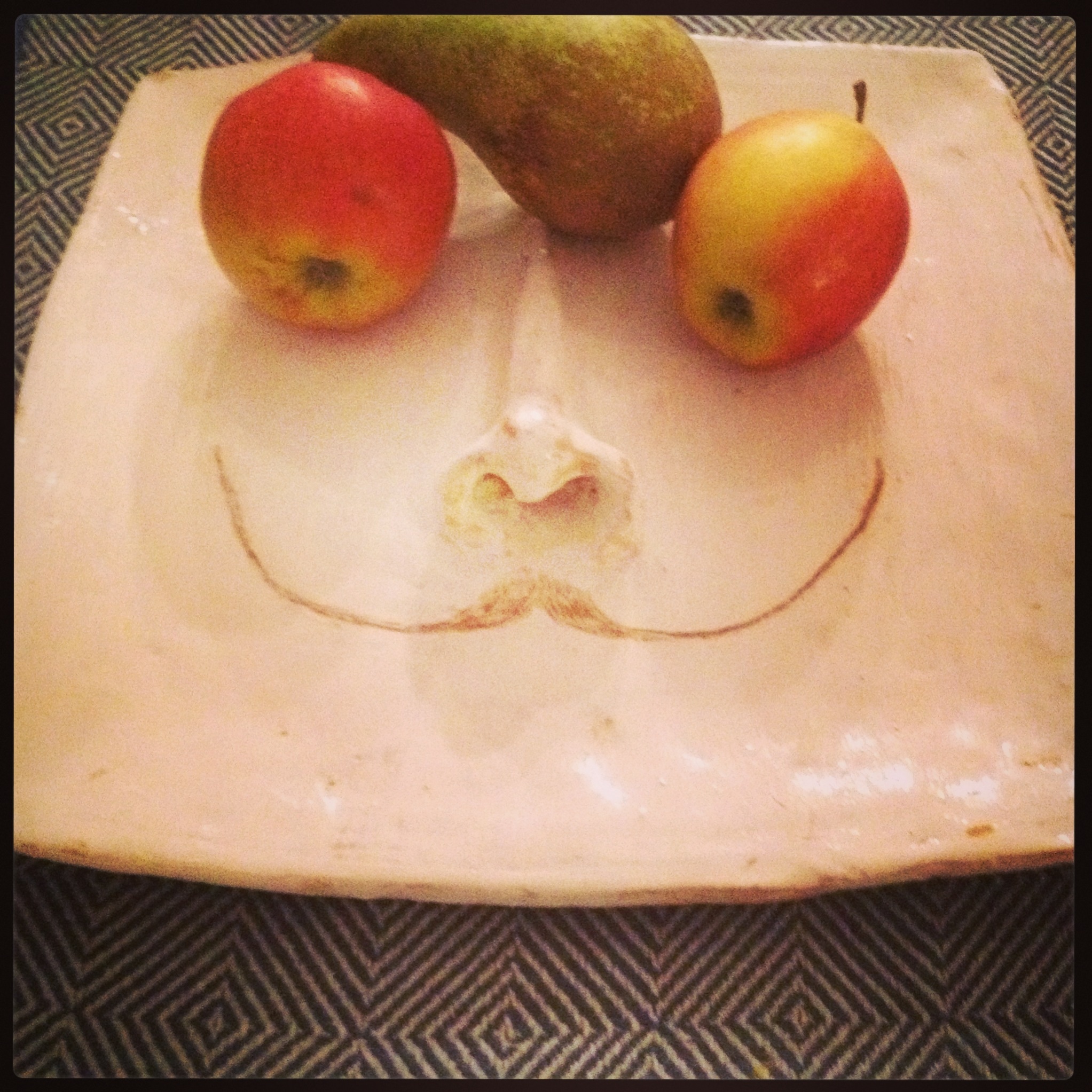 Og biletet over teksten? Det er ei sjølvlaga julegåve frå Ingrid. Eit Salvador Dali- fat, laga på på Kunst og handverksavdelinga på universitetet. Er det ikkje fint, vel?