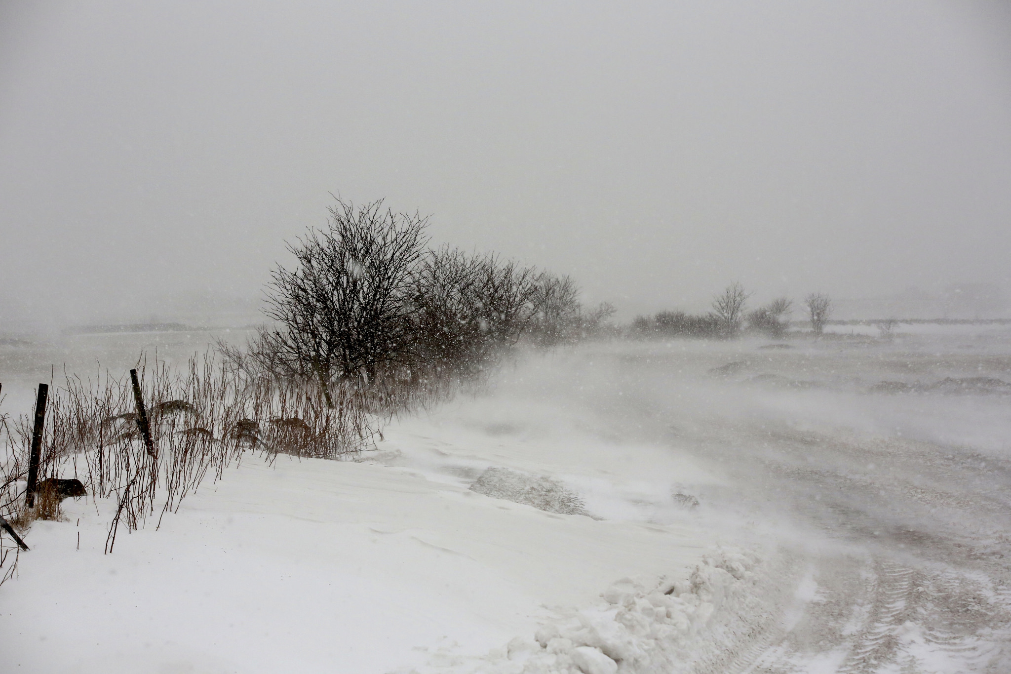 Tre, skodde og snøføyk v Hå gamle