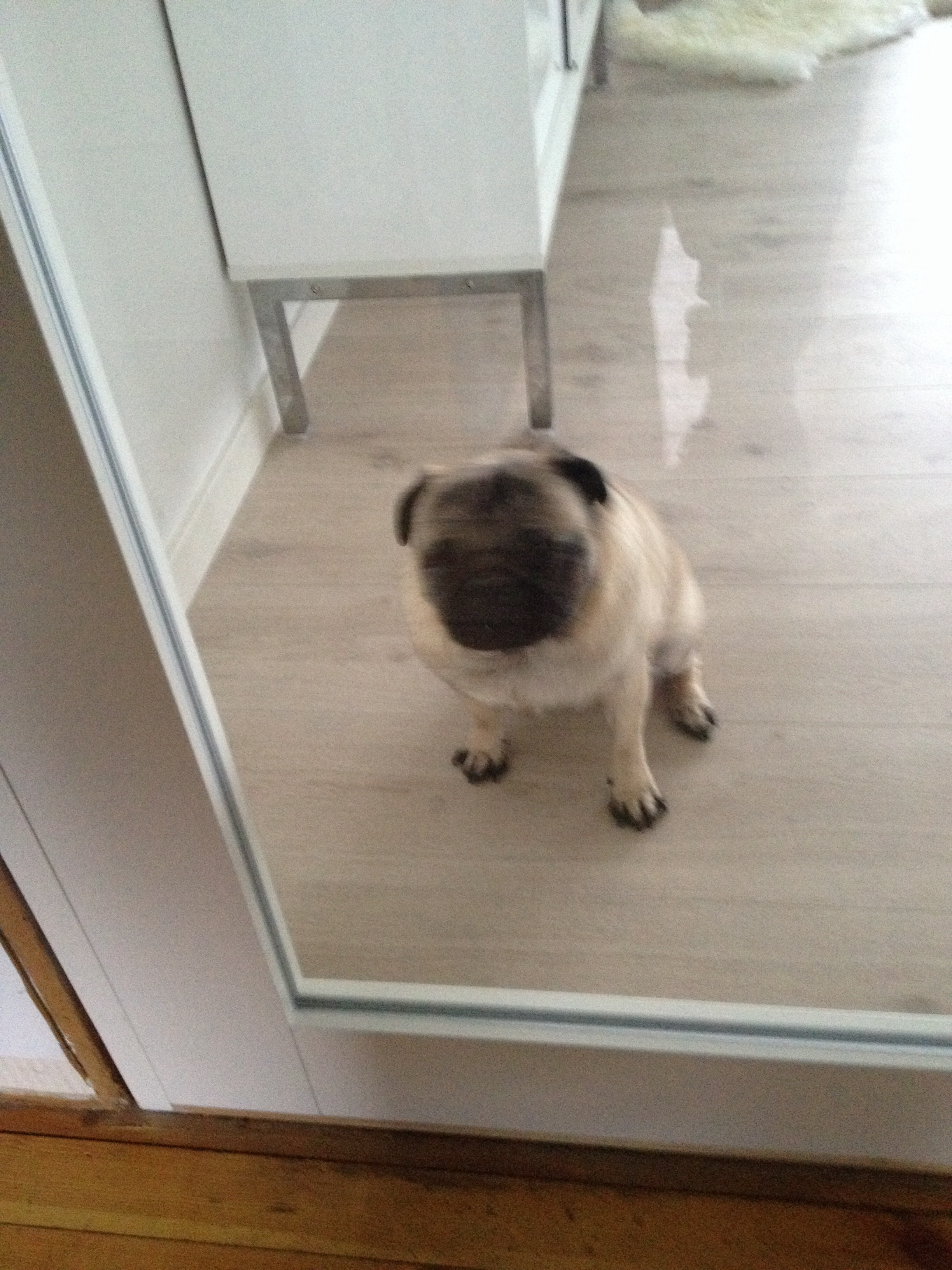 Eg måtte ein tur innom Ingrid og Oddvar og, når eg først var ute. Her sit Oscar bak den nye glasdøra inn til stova og gleder seg til å ynskja skikkeleg velkomen.