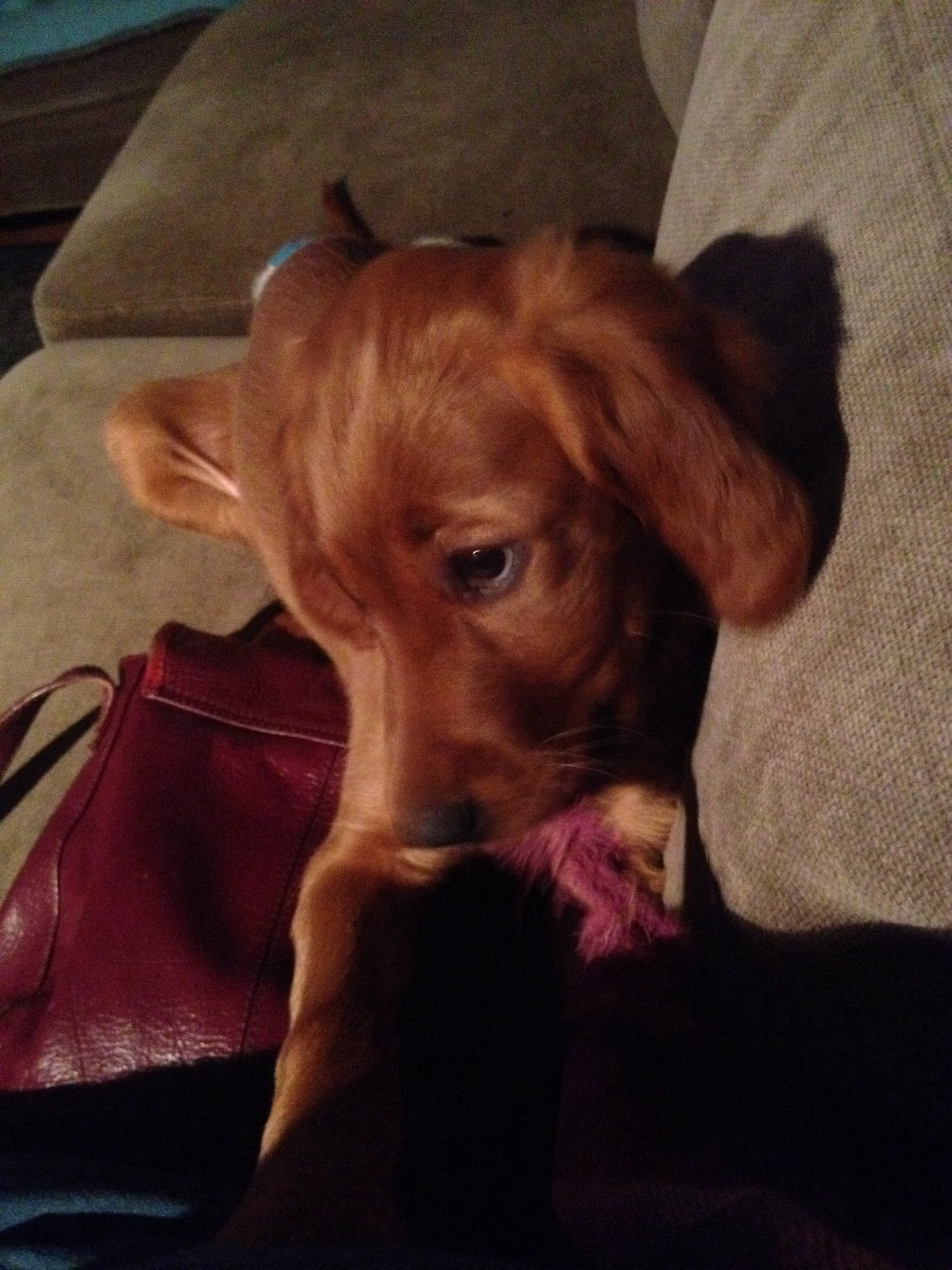 Denne sjarmøren møtte meg på stasjonen i går. Irsk settervalpar er nydelige for dei som ikkje veit det. Det vart mange kosebitt oppover armane.