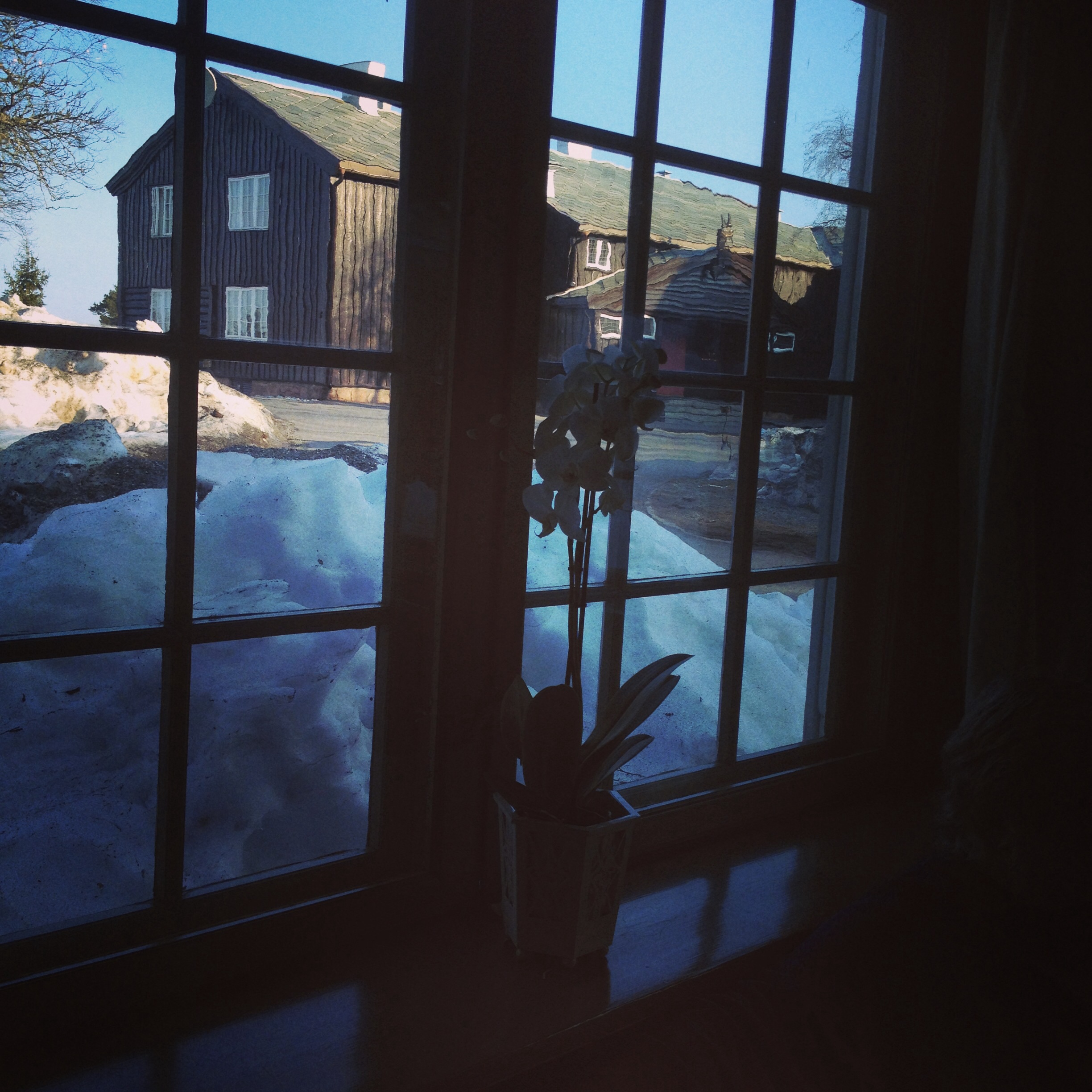 På toget heim gjorde eg eit forsøk på å skriva eit innlegg, men det vart for vanskeleg. Dekningen var frykteleg dårleg. Med denne kommoden ville eg visa kor fint det er på Lysebu. Huset var nesten som ein kongsgard frå eventyra. Eit stort tun, med stabbur og gamle bygningar bygde i gammal stil, inne var det veldig estetisk ordna til med masse friske blomar, levande lys, faklar og peisbål. Det var framleis masse snø der oppe, bare ca 40 minutt med banen frå varme, vårlege Oslo sentrum.