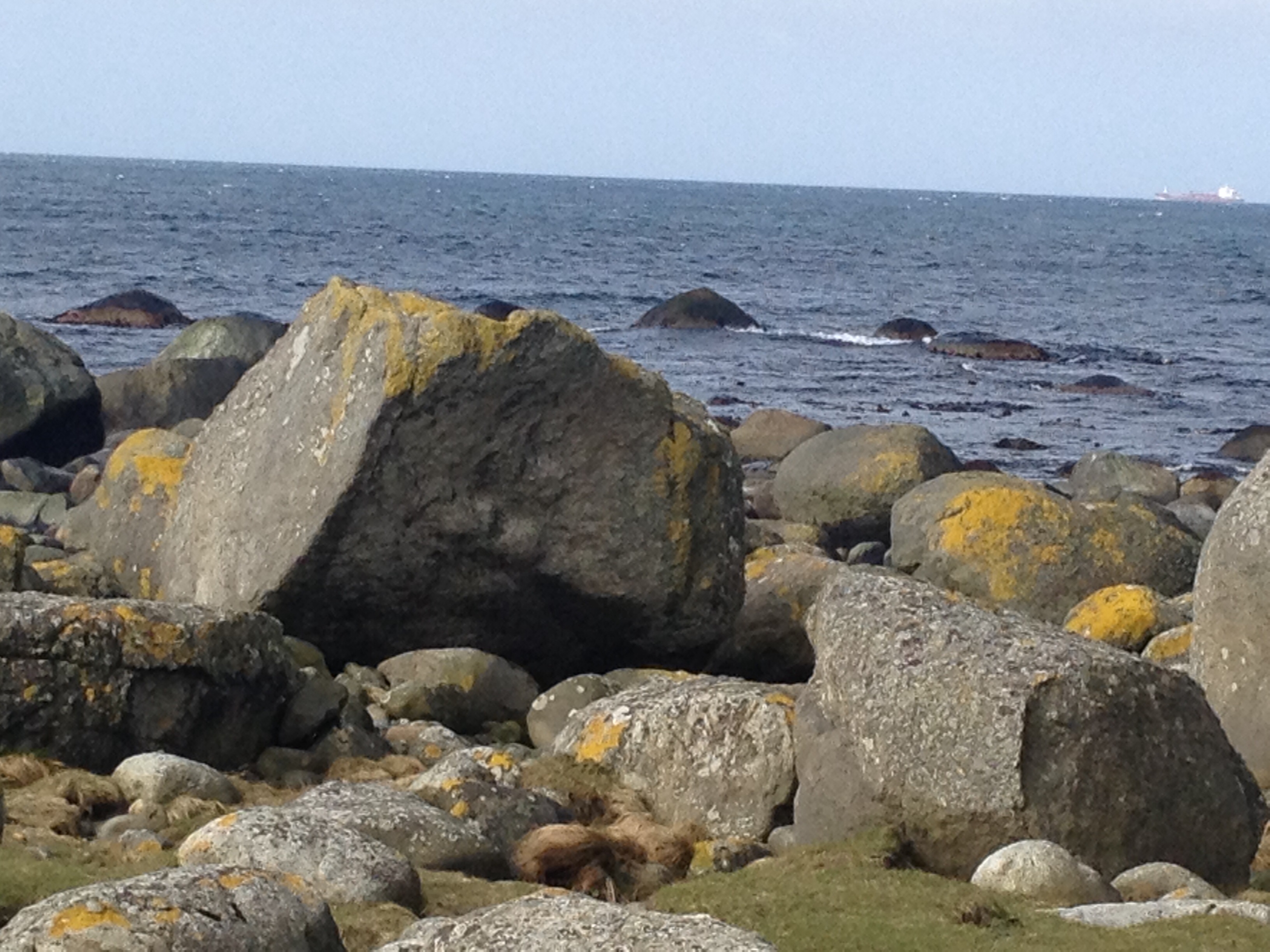 Visst er det vår her og. Me tok ein føremiddagstur ned til stranda. Der var det ekte jærsk vår med iskald vind, grønkande marker, intens lukt av hevd, eller gjødsel for uinvidde, av salt sjø og råtnande tare. Skipa gjekk ute ved synsranda, og fuglane haldt seg nære stranda. Vipa trippar på markene eller flyg lågt og skrikande over der eg går ut i frå at dei har bygd reir, tre store kvite svaner duppa ute i bølgene, hettemåkane vassa og leitte etter mat, gråmåkane skreik og lerka song. Løvetenner åt seg veg gjennom det seige fjorgamle laget av marehalm, og vitnar om oppstode denne påsken og. Dei tunge grå steingardane stod like støe mot vinden som dei alltid gjer. Eg kjenner att det litt råe draget av fuktig jord og vått fjorgammalt gras som fortel meg at nå er våren her i år og.