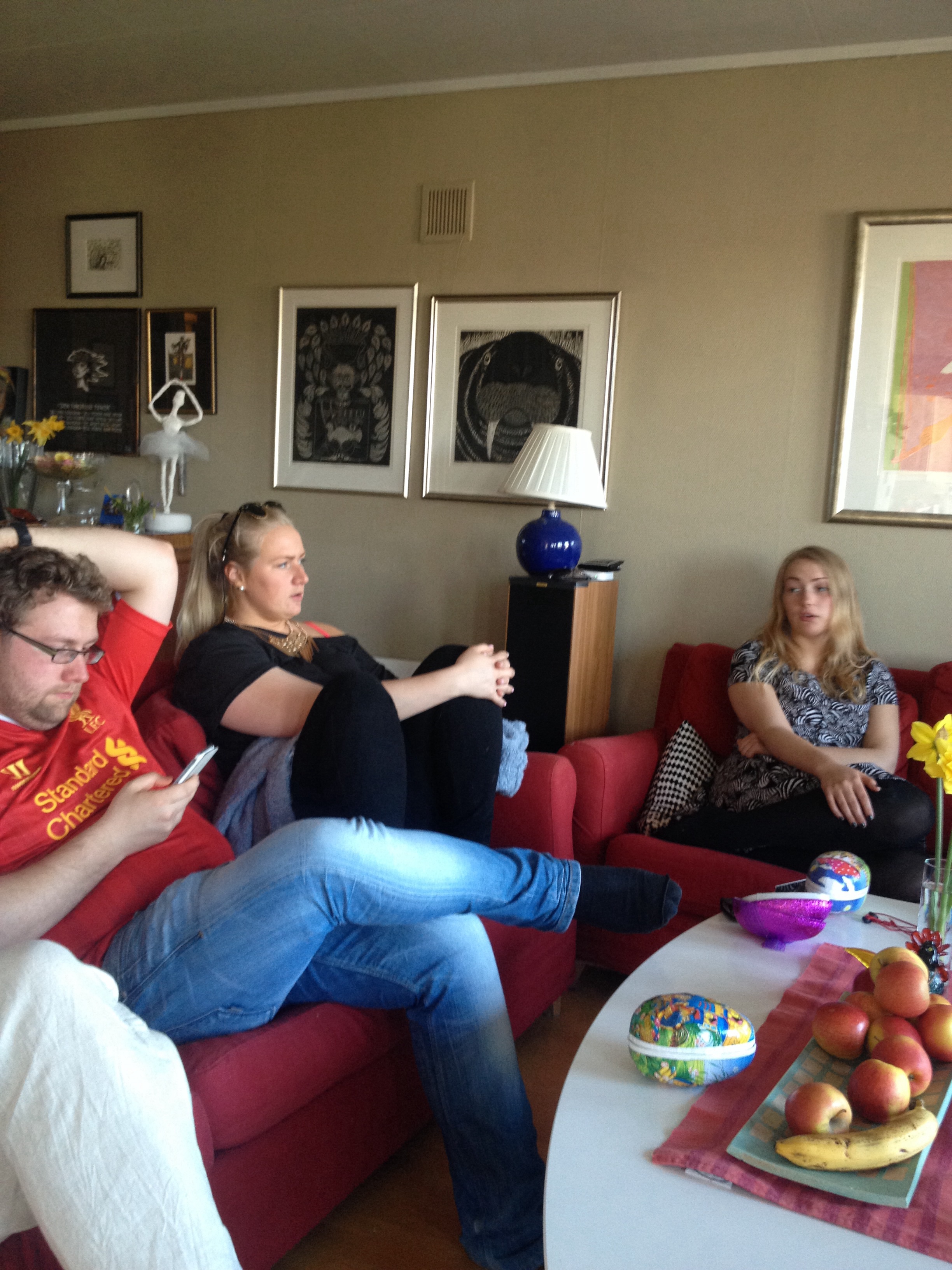 Me hadde invitert barn og foreldre til påskemiddag, og i det fantastiske veret var det eit ganske ambisiøst prosjekt eg hadde tenkt å gjennomføra: Tre typar greske kjøttbollar med ovnssteikte poteter, rotmos og salat. Kjøttbolleoppskriftene var henta ned frå nettet: Ein type med tørka brød, mykje løk og spisskummen, ein type med kvitløk, løk, oregano og friske urter, og ein type med chili, kvitløk, løk, pepar, oregano og kanel… Det meste vart ete opp, men eg er ikkje heilt sikker på om smaksopplevinga stod i forhold til innsatsen…