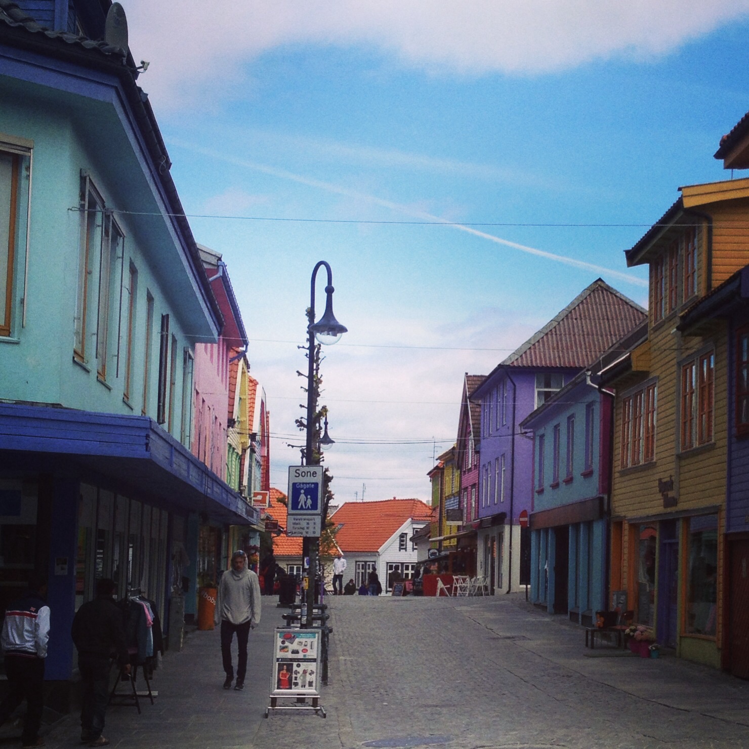 Den etterpåkloke vermeldinga for den tredje mai, må vera varm sol, kald vind og eit par små kjenningar av vårregn tidleg på kvelden. Som biletet fortel, så har me vore på tur i Stavanger i dag og. Eg har oppdaga at det er veldig kjekt å gå tur i bygater, og min fotograferande sambuar har oppdaga at det er veldig kjekt å fotografera i bygater. Slik er det å ha vaksne barn og få forpliktingar, det er bare å hiva seg i bilen og dra ut på tur når det måtte passa oss. Ein koseleg lunsj på ostehuset fekk me og lagt inn. Ungane ringde frå heimen og spurde om dei fekk lov til å starta på grillmaten i kjøleskapet, som var kjøpt inn til i morgon, og me svarte at det kunne dei bare gjera, me kunne handla inn meir. Eg anar ikkje kven det blir som skal grilla her i morgon, men det vil visa seg. Byen var prega av både russetreff og konfirmasjonar, både bunad og russedress var hyppig brukte kostyme i gatene. Det aller beste er at byen er blitt heilt grøn sidan sist. Me var innom biblioteket, der eg fekk aktivert det nye nasjonale lånekortet mitt, slik at eg kan begynna å låna e-bøker. Eg må jo tilstå at bakstreversk som eg sikkert er, så er eg glad i å ha ei heilt ekte bok med ark og sider mellom hendene, men eg tenkte eg kunne gke det ein sjanse.