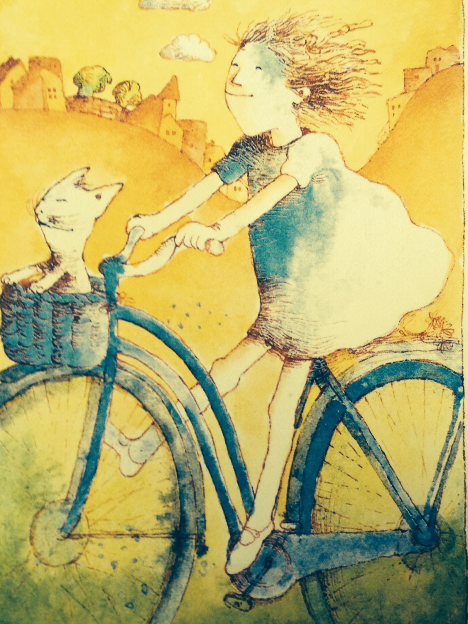 Ein gong i tida var eg i kontakt med Vivan Zahl Olsen, som vel må vera min favorittbarnebokillustratør gjennom tidene. Det er ho som mellom anna teikna illustrasjonane til Fru Pigalopp. Eg fekk eit kort av henne der ho sa at ho godt kunne ha lyst til å illustrera nokre bøker eg hadde send henne manus til, men så kom det liksom aldri vidare… Av og til er eg for dårleg på å stå på for å få ting i havn, eg ender med hoppa på nye idear og prosjekt i staden. Dette er det fine kortet ho sende meg. Det dukka opp under eit forsøk på rydding av arbeidsrom. Eg synest at kortet på ein fin måte viser kva som er viktig i livet…