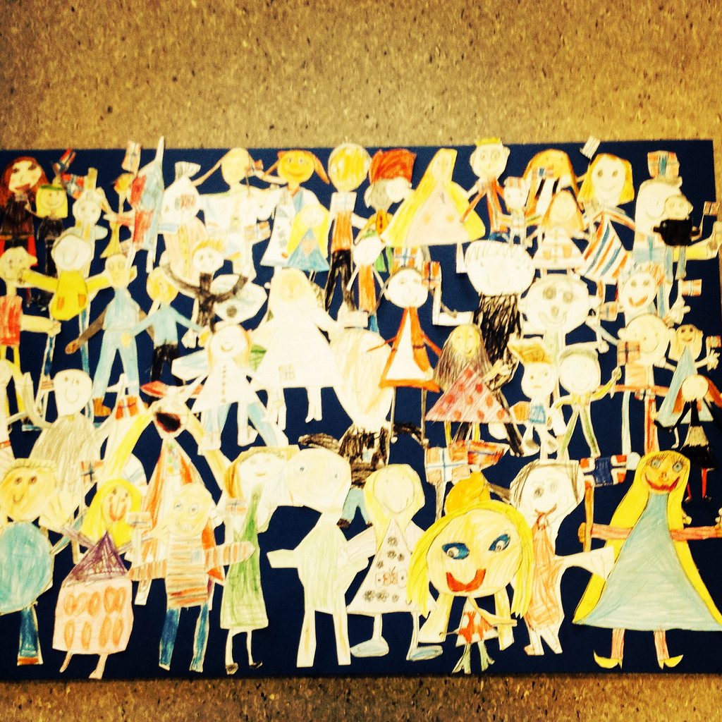 Og til slutt set me saman alle teikningane til eit skikkeleg hav av glade ungar, som me skal bera med oss i syttande mai -toget.