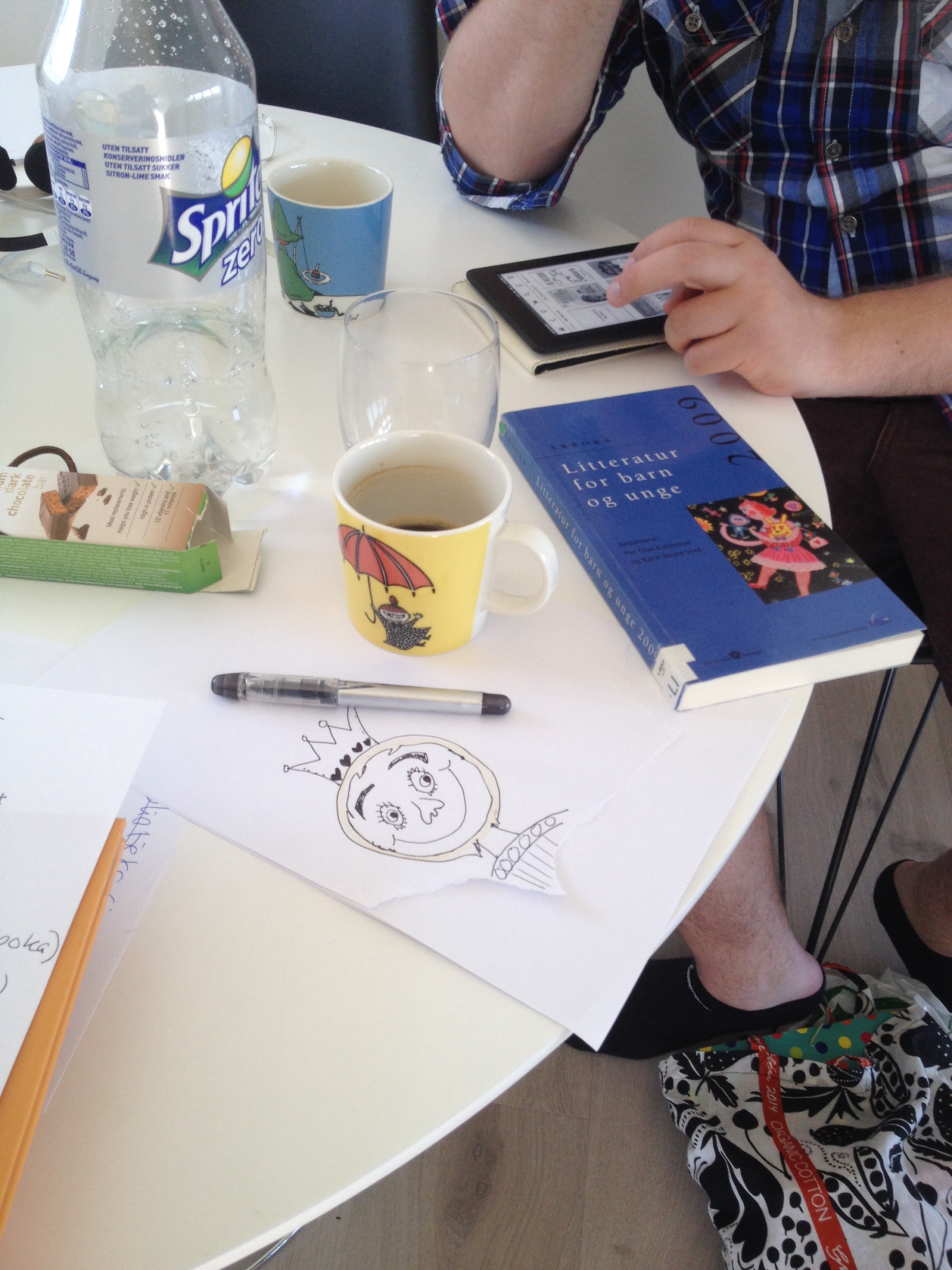 Odd Christian og eg hadde skaffa informantar på kvar vår skule som svarte på tre enkle spørsmål Ingrid skal bruka i oppgåva si. Her leverer me informasjon og har ein kreativ kopp kaffi…