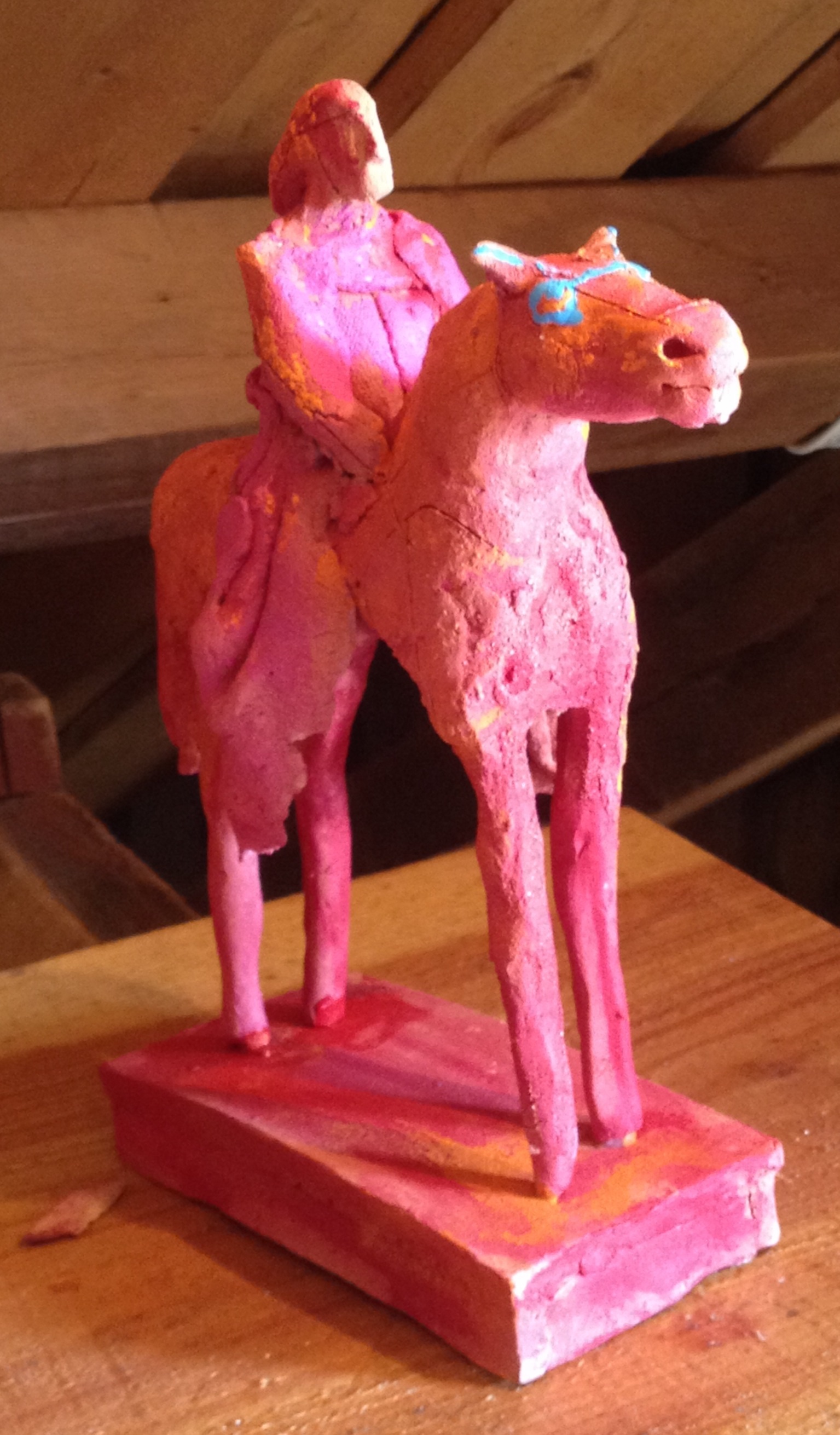 Han her, rir verkeleg på sin høge hest. Han har ei slags krone på hodet, så det er noko opphøgd over han. Om reisverket gjer ridinga funksjonell, er ein heilt annan ting.