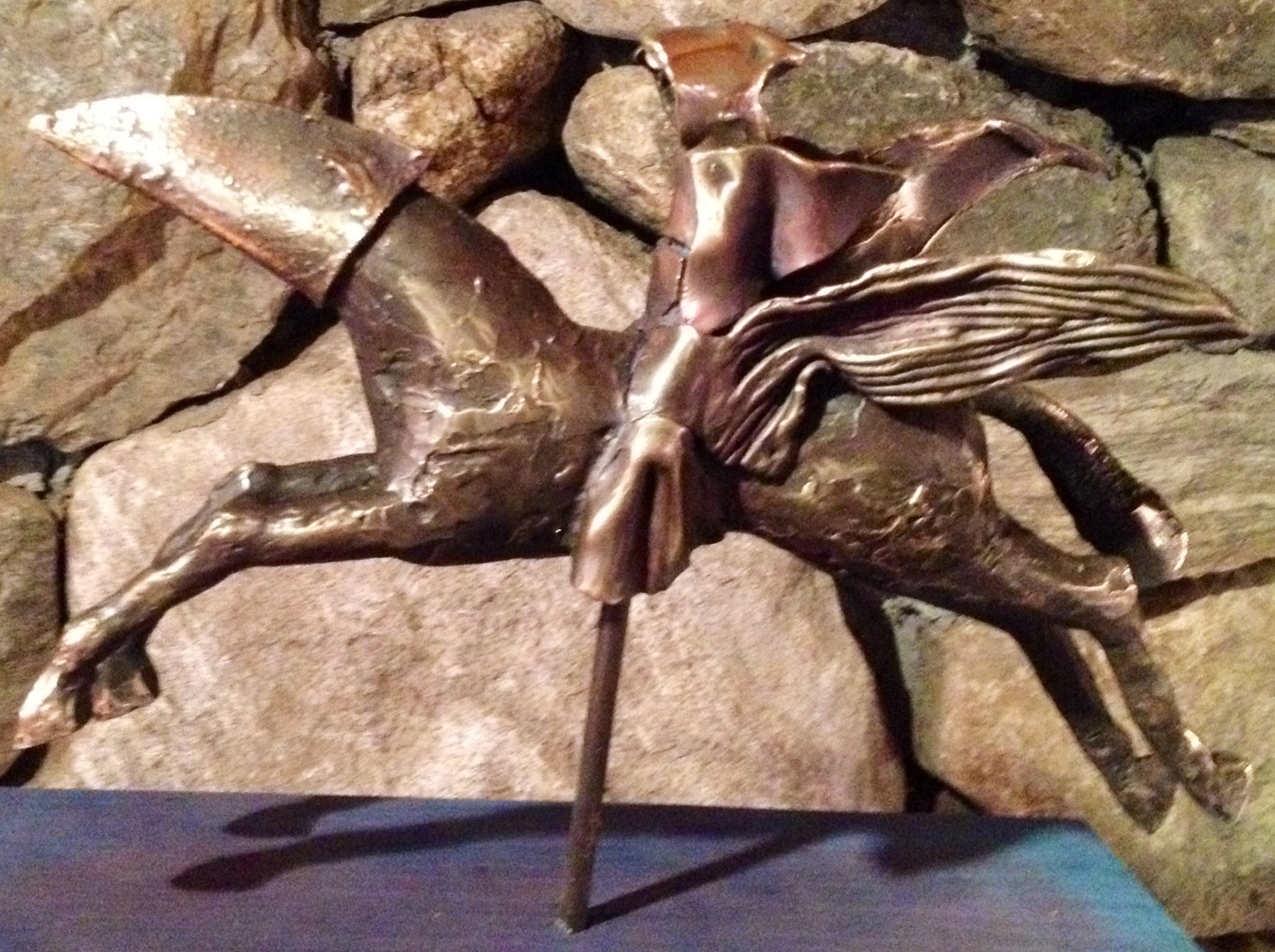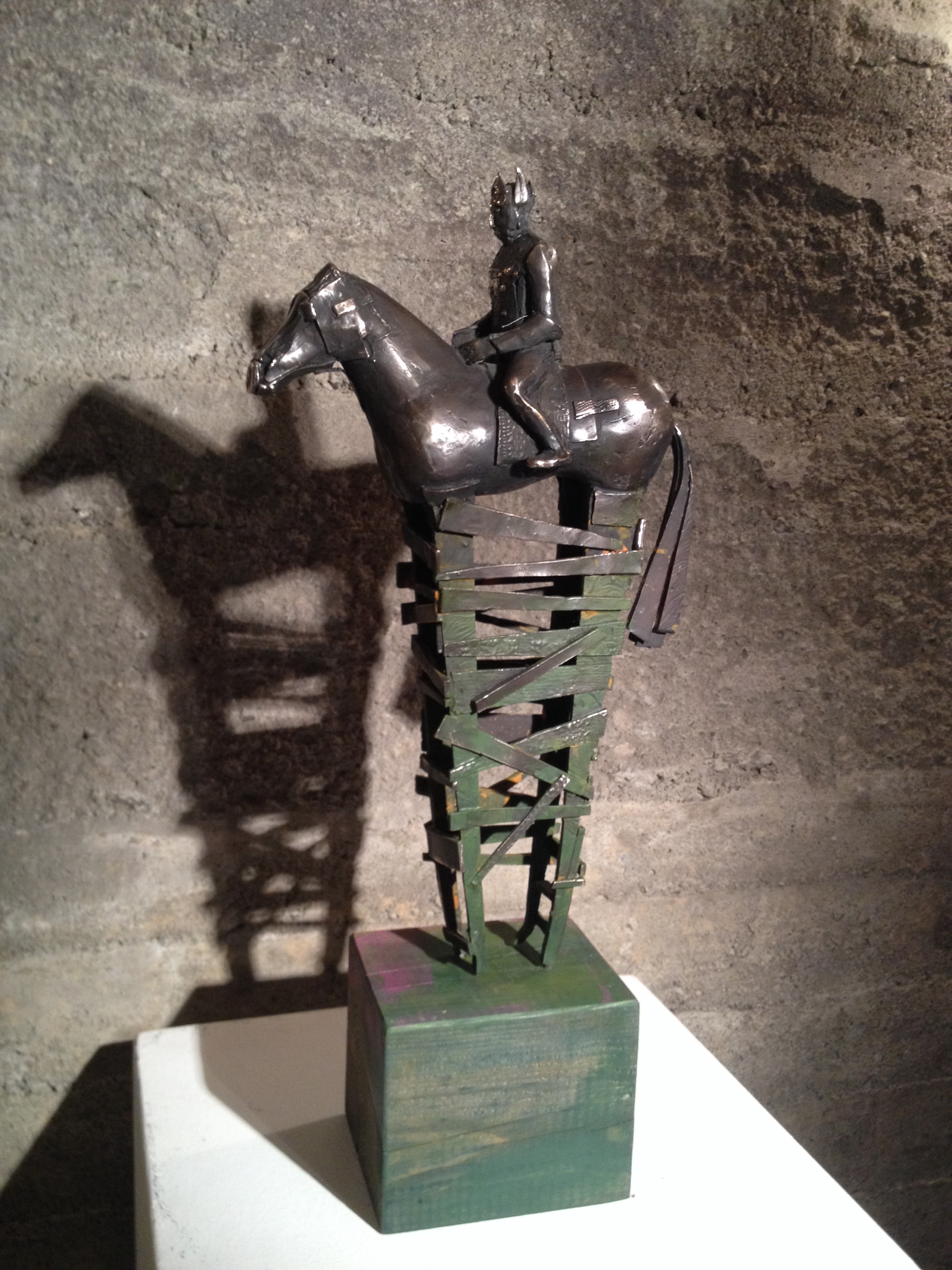 Denne ryttaren rir på ein maskert hest som ikkje kan sjå… Sjølv er han eller ho hylla inn i middelalderaktige gevantar. Eg synest desse bronsehestane er så estetisk vakre, samtidig som dei triggar mange historiar i meg.