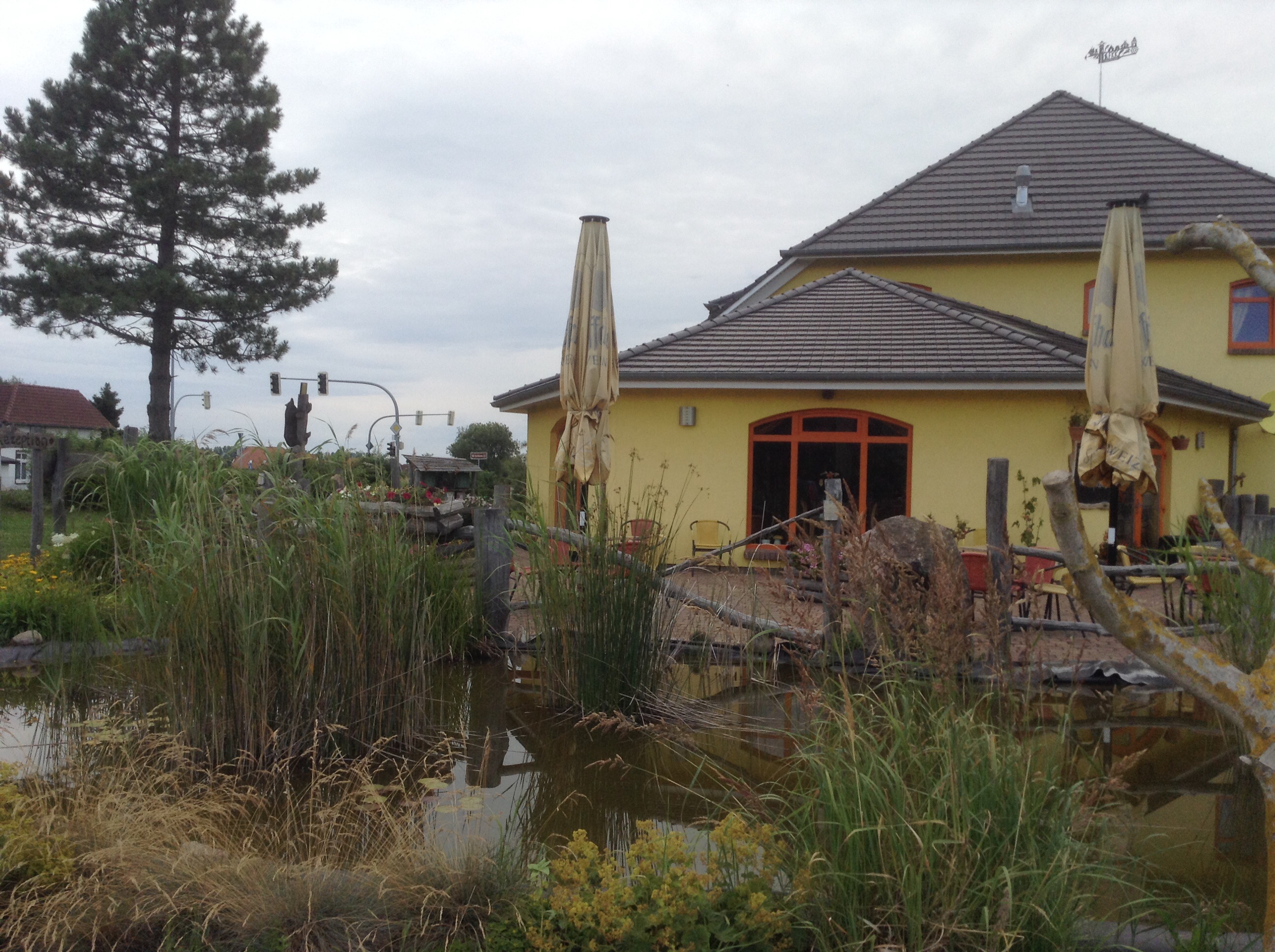 Me har akkurat funne oss rom for natta på eit honninghotell, «Hofladen und Hofcafe zum Honigdieb». Det er utforma med tema honning, og er veldig fint.