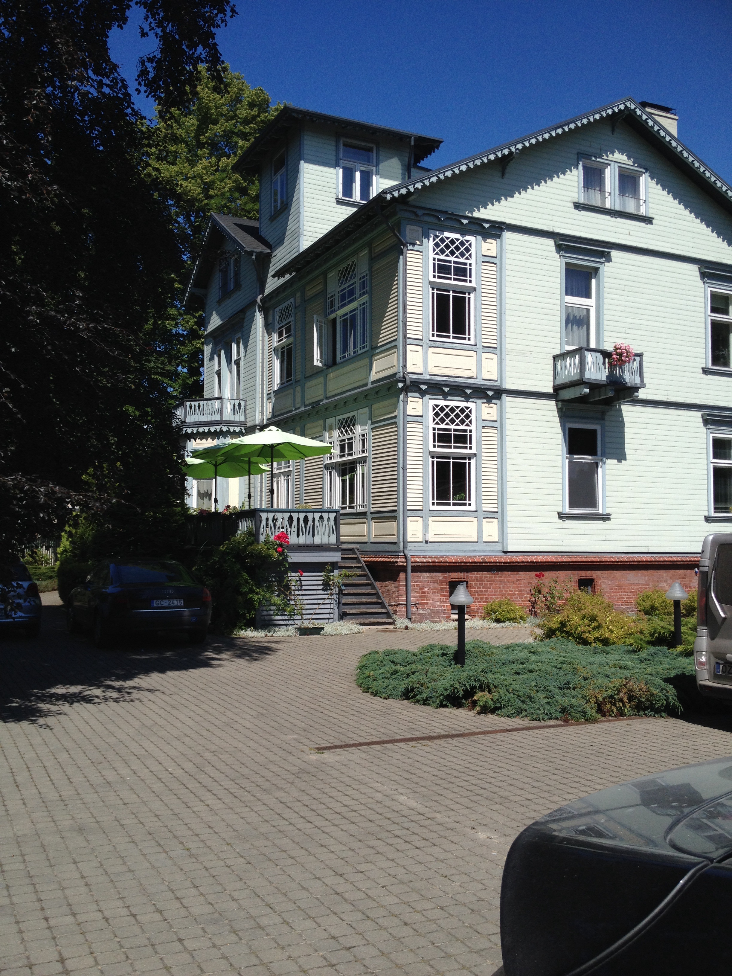 Tidleg på ettermiddagen kom me til ein badeby på nordkysten av Latvia. Me hadde bestilt rom på eit fantastisk hotell som ser ut som ein blanding av Villa Villekulla og Mummihuset.