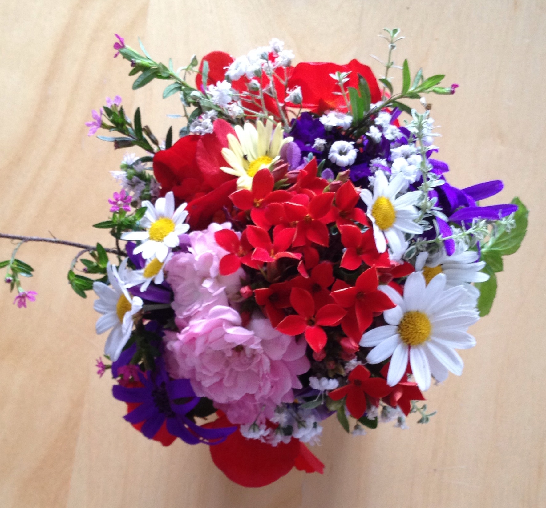 Etterpå gjekk eg heim og bakte eplekake der skiver av irrgrøne eple låg tett i tett med dryss av kanel og sukker på toppen. Så kunne eg med stor fargeglede plukka vertinnebukett nummer to frå krukkene på verandaen min.