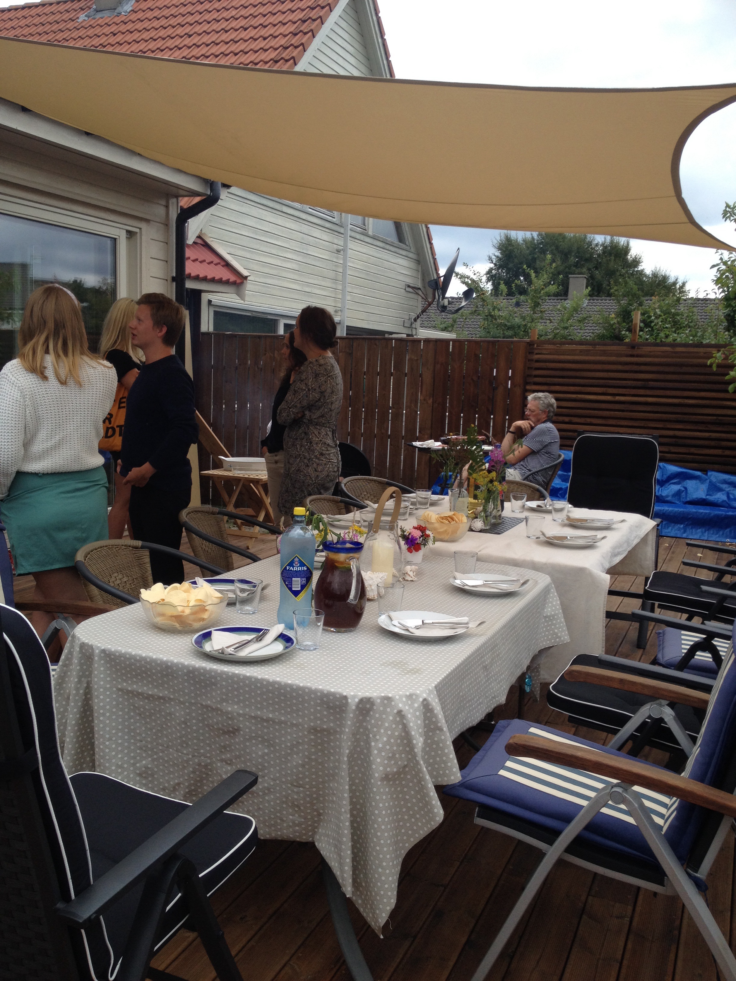 Så stabla me oss i veg i bilen til Hundvåg til ein av dei aller koselegaste sommarinvitasjonane i år. Heidi og Per Inge inviterte til kveld saman med vaksne barn. Me er ein gjeng venner, som i viktige år av liva våre, ofte var saman på sundagsturar, gebursdagsfeiringar, hytteturar, nyttårsfeiringar og mykje anna kjekt frå dei eldste ungane våre var bittesmå og opp gjennom oppveksten deira. Nå er ungane mellom 18 og 29 år, og det er veldig mange år sidan me har klart å samla ungdomane i lag med oss. Denne gongen klarte me det nesten. Tre ungdomar og ein far hadde lovleg fråver. Me andre sat rundt langbordet på terrassen til Heidi og Per Inge og koste oss med grillmat, plommer frå eige tre, friske bær, eplekake og is. Det var så fint å sitja der i lag, i ein sommarkveld som etterkvart vart svalare enn dei ne har kjend på lenge.