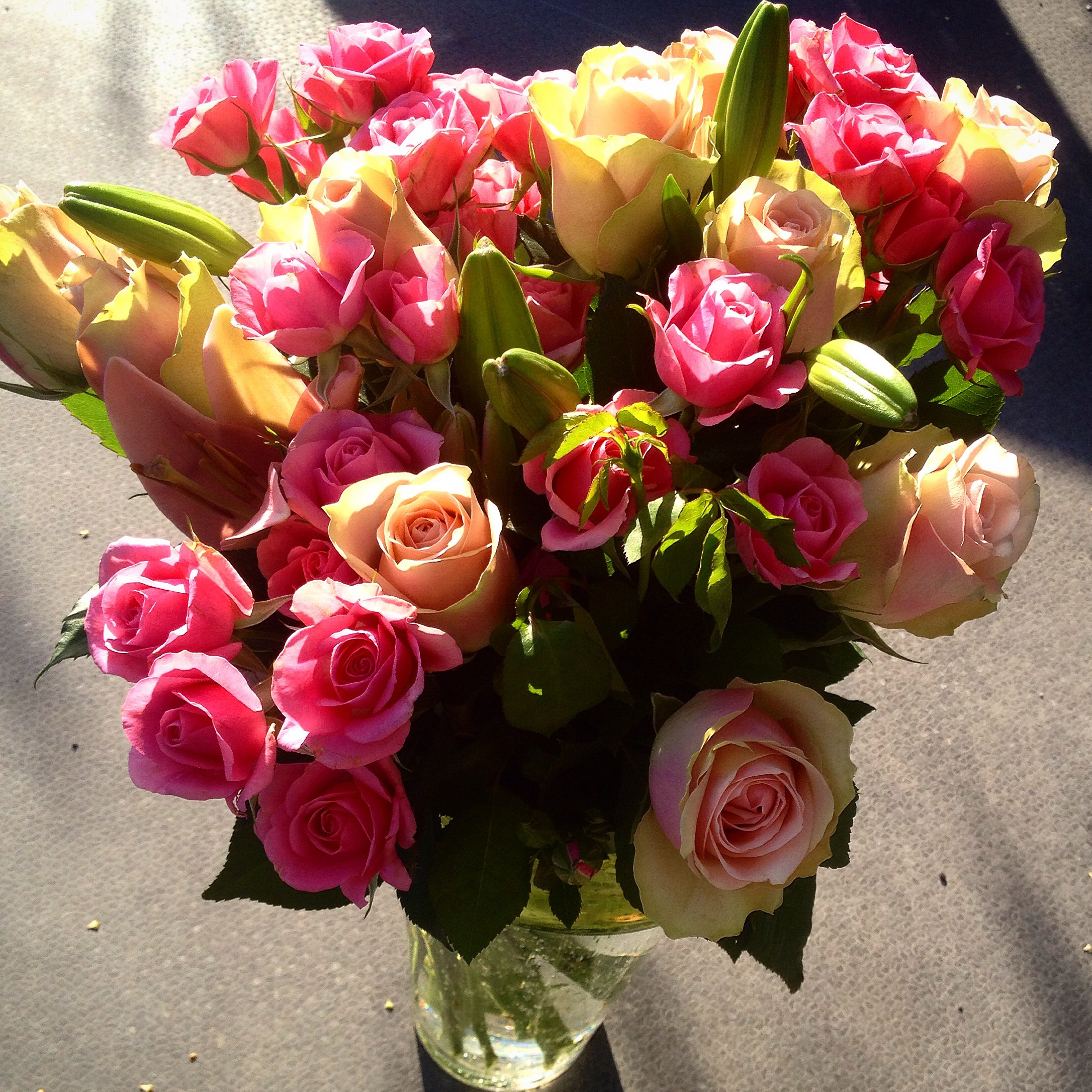 Eg må fortelja om eit besøk til. Plutseleg stod det eit blomsterbod utanfor huset. Dei er ikkje spesielt tittgjengde her, så når dei dukkar opp er det stor stas. Me fekk ein heilt spesielt fin blomsterbukett send av Eva Mari. Av og til føler eg meg rett og slett som fetter Anton i dei gamle gode Donaldblada. At eg endå oftare føler meg som fetter Klodrik, er ei heilt anna historie.