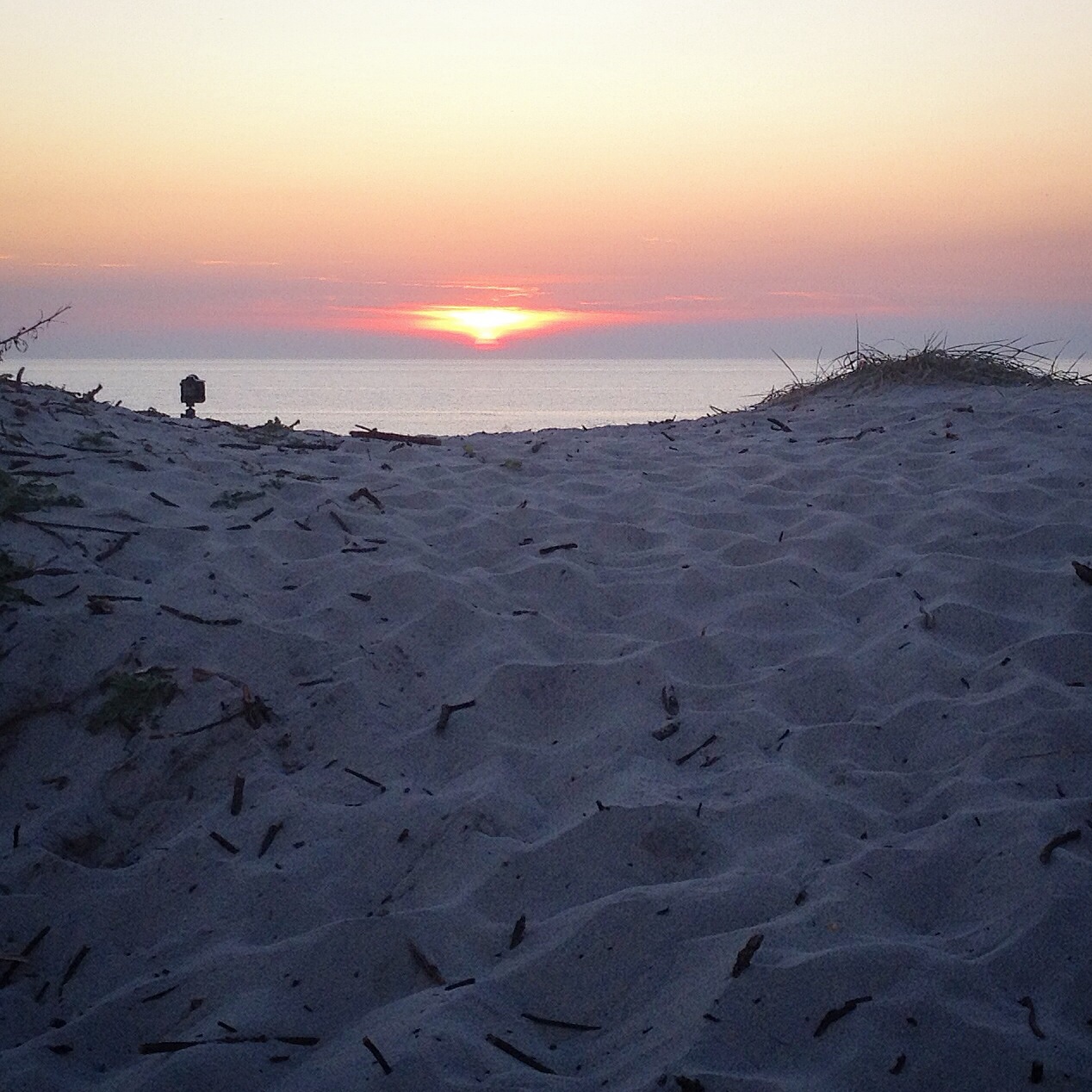 Eg trur ikkje eg kan hugsa maken til slike fine haustveker som dei me har hatt i år. På dagane er det nesten sommartemperaturar, medan kveldane er blitt kaldare, mørkare og skarpare. I går kveld, litt før halv åtte, bestemte me oss for å dra ned til sjøen. Eg trudde me hadde god tid til å nyta solnedgangen, for solkula hang framleis eit godt stykke over horisonten, men det viste seg at me faktisk var seint ute. Det gjekk opp for meg at eg ikkje heilt har forstått kor seint på året det har blitt, for dagane er framleis fulle av seinsommar. Då me nådde ned til Orrestranda, var sola i ferd med å siga heilt ned i havet, hylla inn i ein rosaoransje dis. Havet låg der og blenkte i kvitt og metall, og nokre lette skyer hang glødande og lyste lågt på himmelen. Det vr til og med ei vertikal lysande sky der, som gjorde at himmelen nesten var krossmerkt. Folk bada i det glødande kveldslyset, og eg angra nesten litt på at eg ikkje hadde badetøy med meg. Eg har aldri bada på jærstrendene i siste halvparten av september, men i går kunne eg faktisk hatt lyst til å gjera det. I staden vart eg gåande og vassa i nærare ein time og bløytte ut både tights og kjolekant. I natt vakna eg med skikkeleg vondt i halsen, men viss det er nokon som helst samanhang med nestenbadinga i går, så var det faktisk verd det.