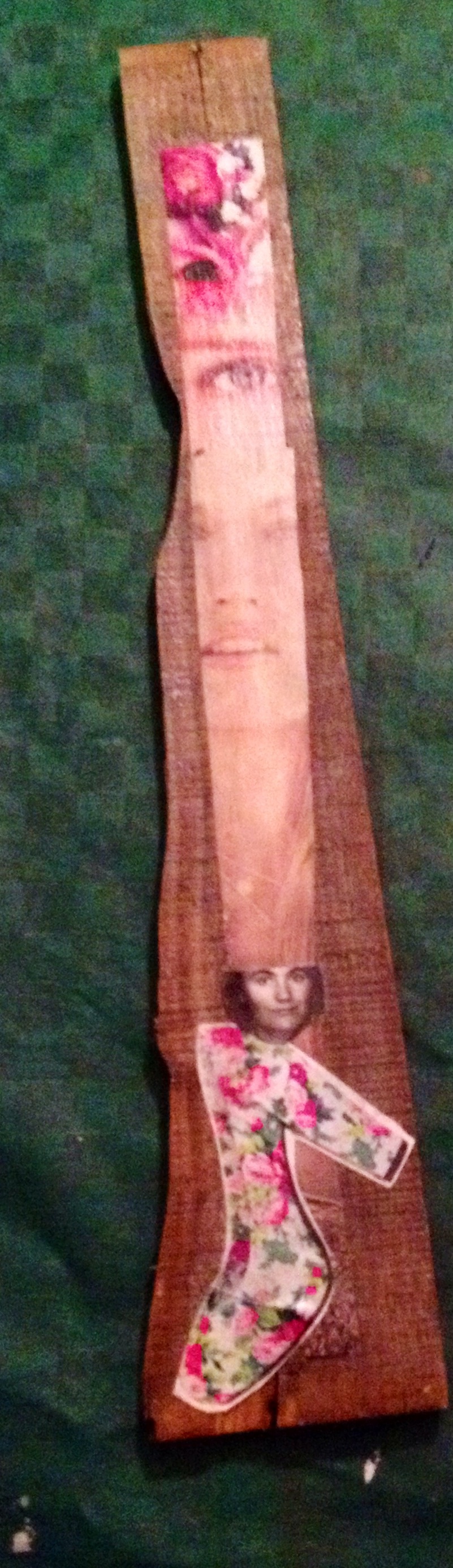 Me hadde ein fin kreativ kveld heime hos Eva, der me prøvde oss på collage på drivved.