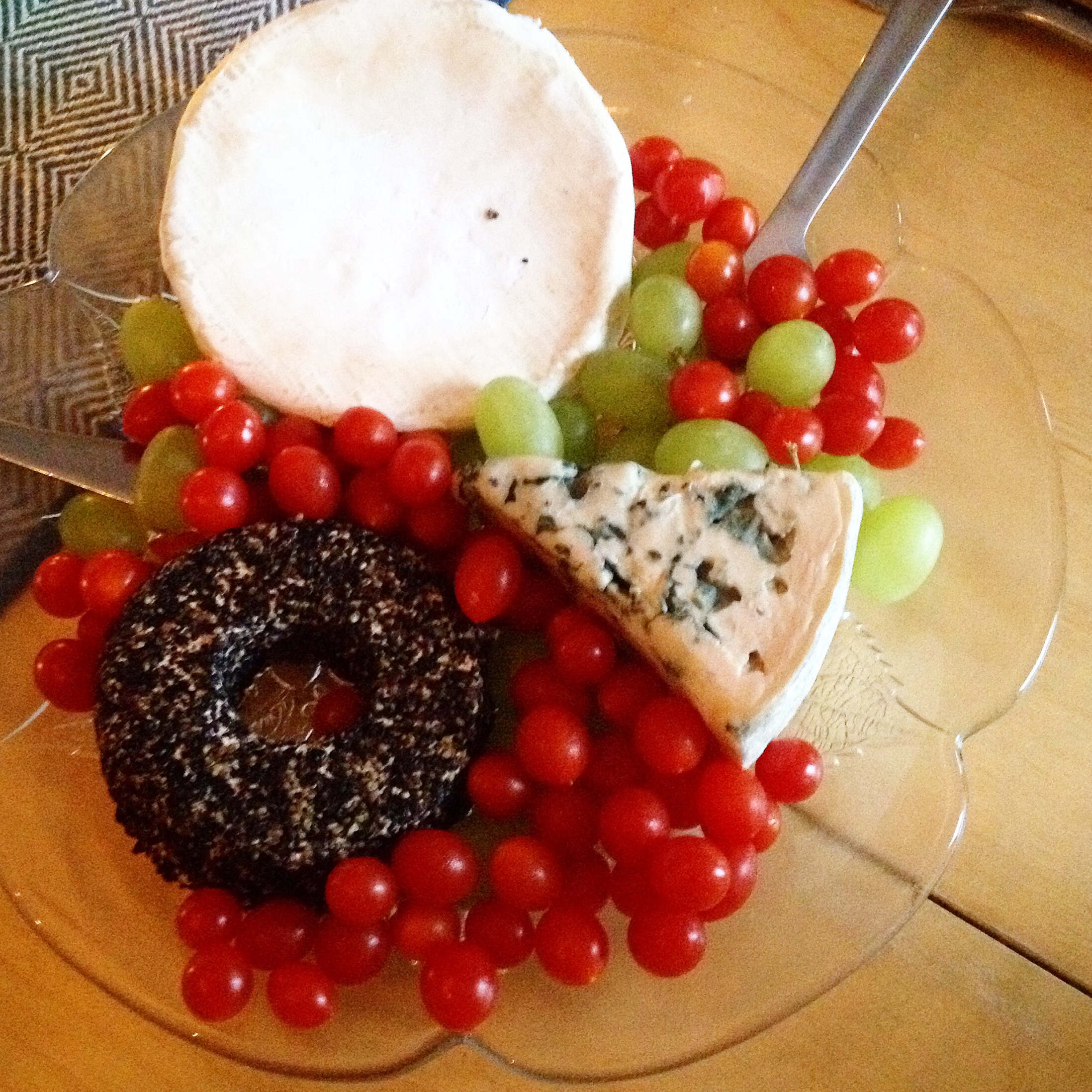 I dag var det sol att, men lufta var ikkje lenger sommarvarm, og vinden bles ganske friskt. For første gong denne hausten tende me stearinlysa i lysekrona i går kveld. Me hadde invitert Hanne Lise og Gunnar til fylt krabbe, ost og heimebakte scones. Det blir mørkt om kveldane nå, og det er fint å vera inne. Det som prydar ostefatet i lag med druene er tomatbær, tomatar i bærstorleik. Det hadde eg aldri vore ute for før, så det kjøpte eg med meg.