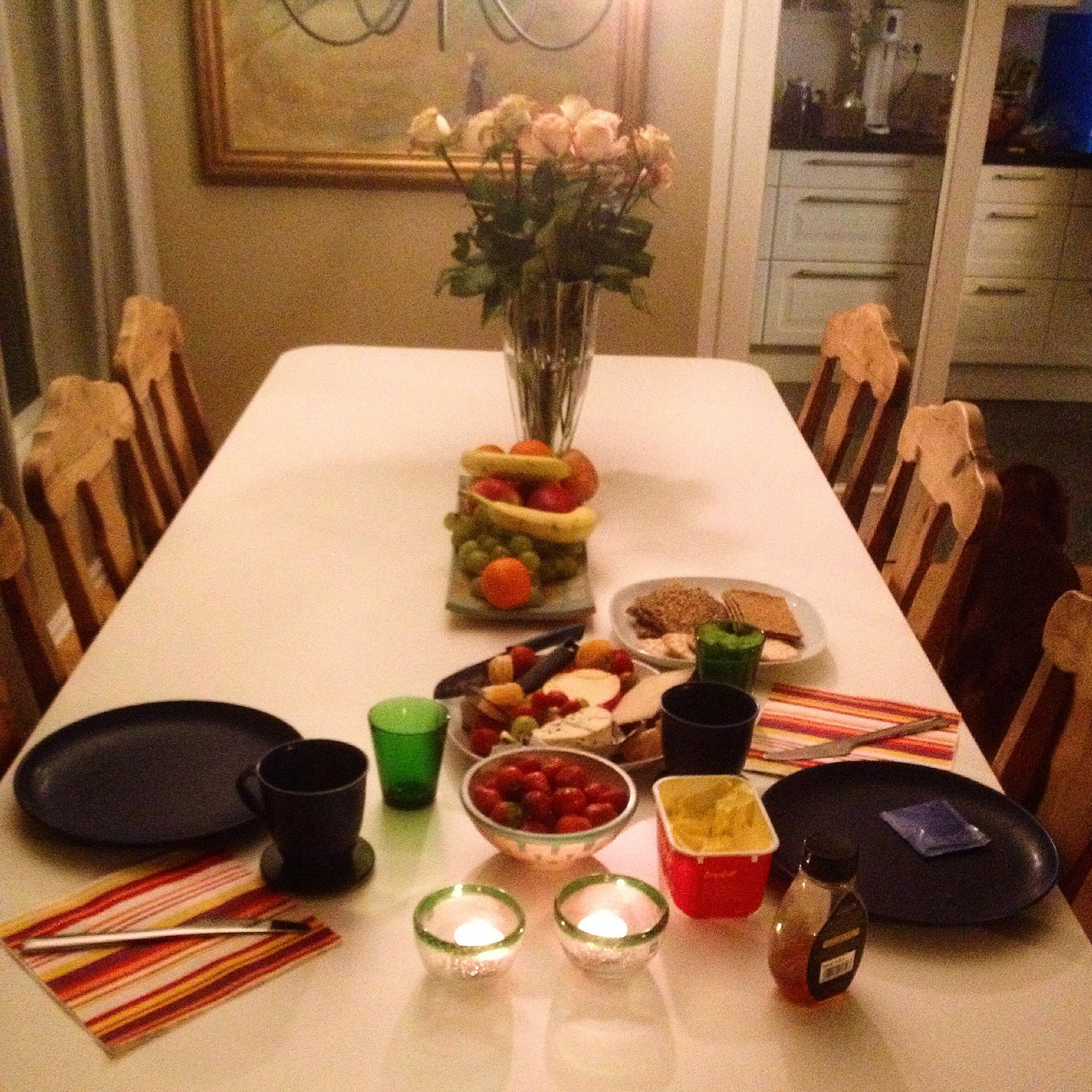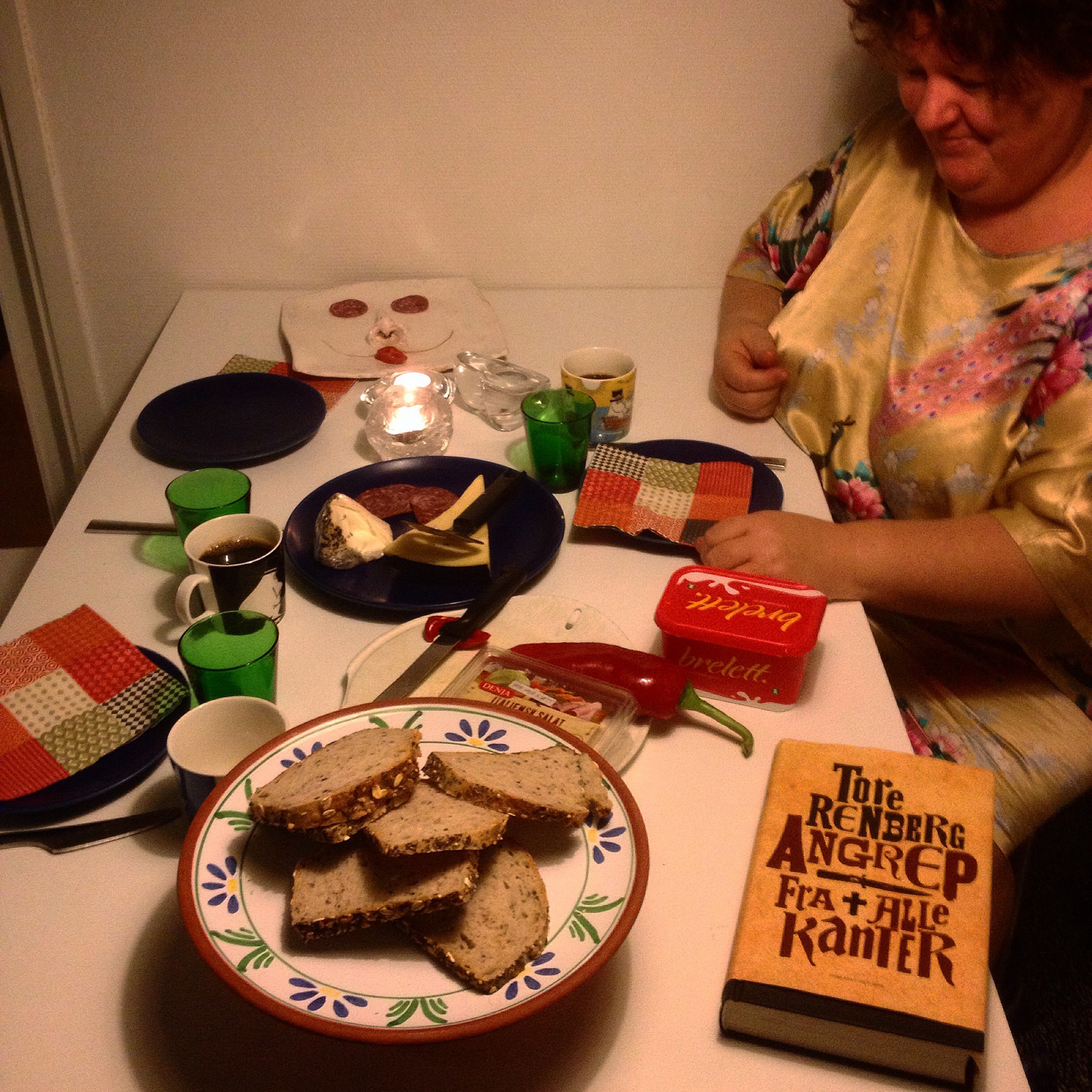 Me har ikkje lese bruksanvisningen på spisestuebordet endå, så enn så lenge går me ut i frå at me kan setja mat på det, og det har me og gjort.