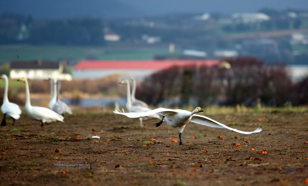 Er ikkje dette biletet fantastisk? Du ser at svana sparkar i frå så jorda skvett i det ho skal til å letta.