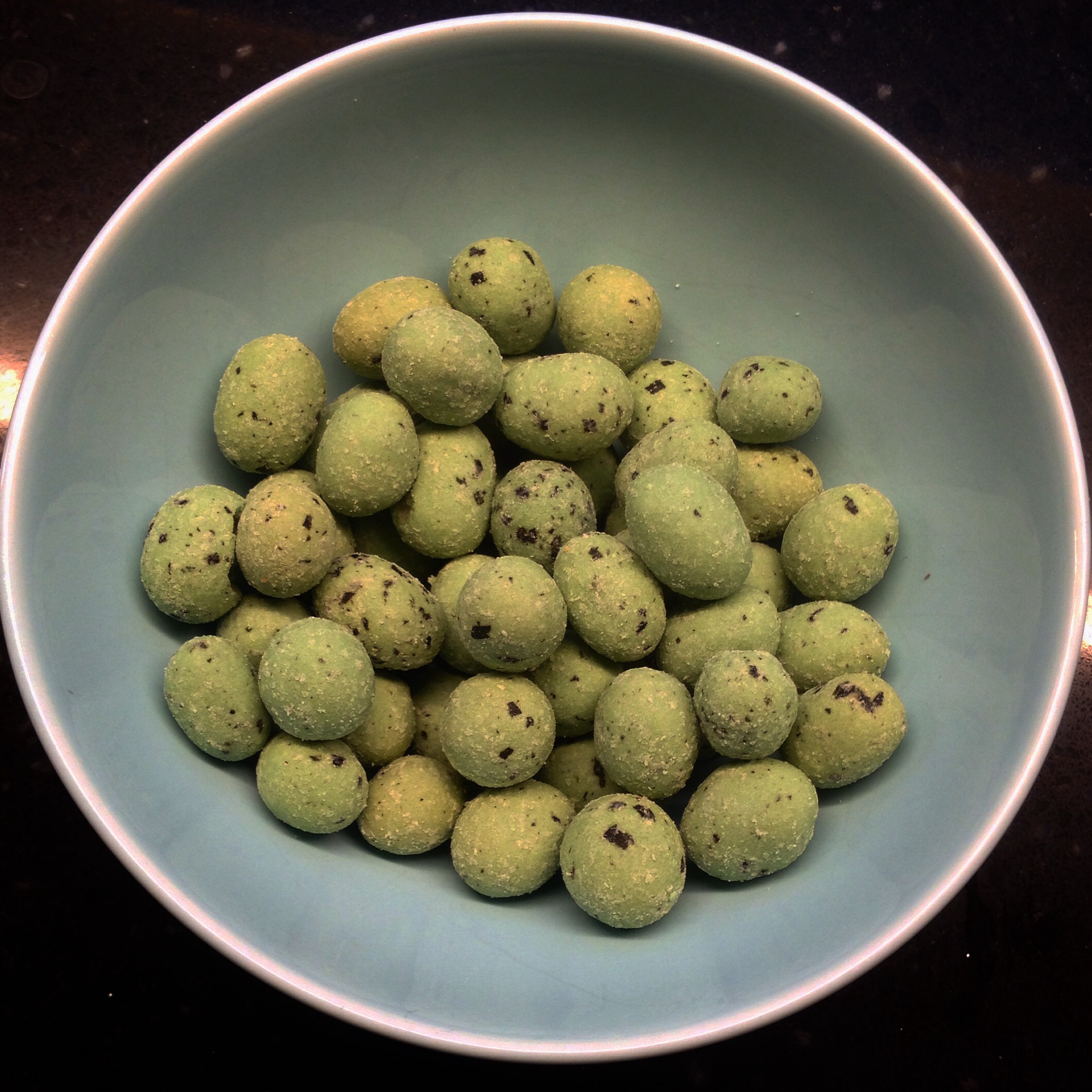 I tillegg til å koka meir chilimarmelade, har eg knaska av ei skål med wasabinøter. Livet levest med andre ord sterkt for tida…