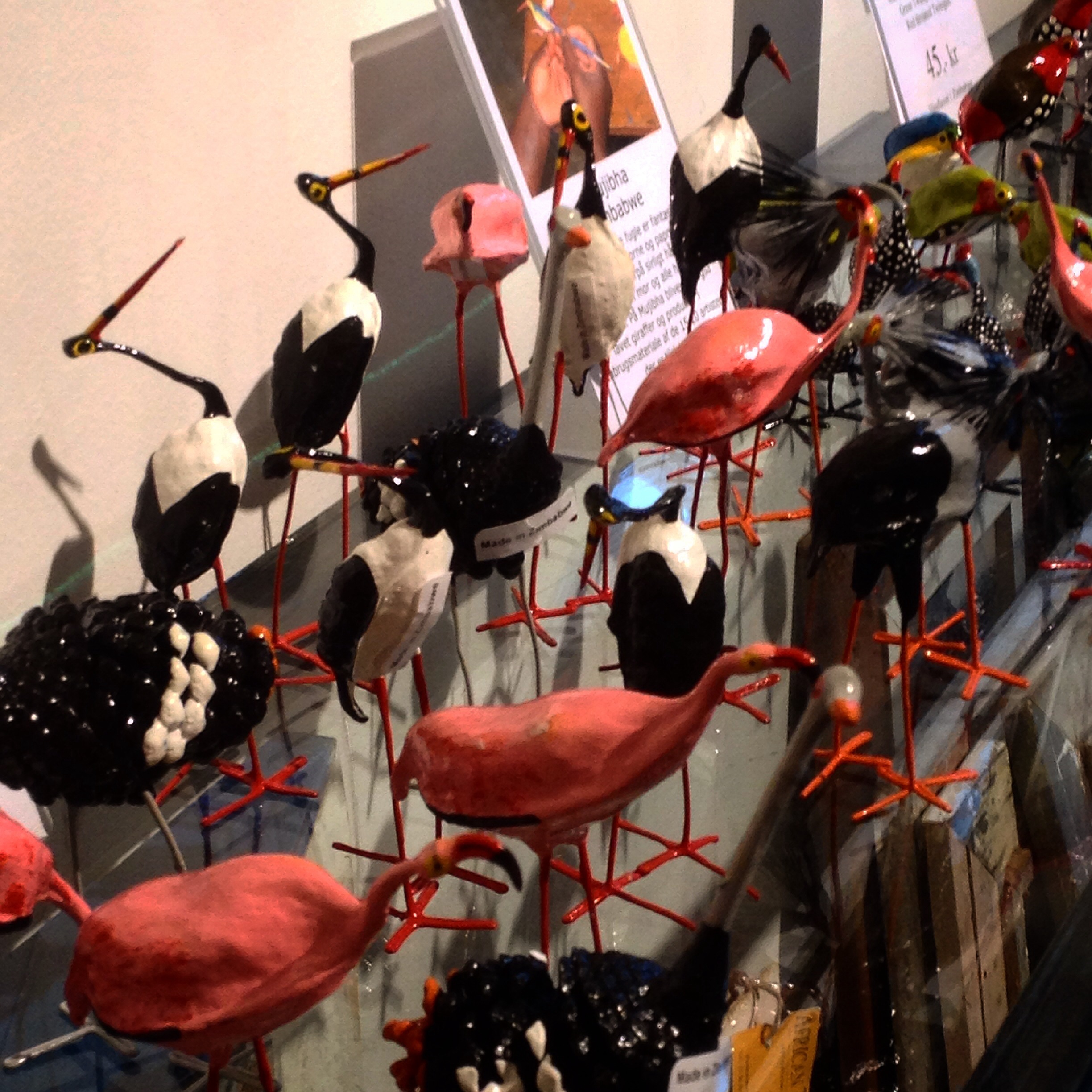 Men me har beundra sørafrikansk kunsthandverk. Eg kjøpte med to eggeglas som kan lysa litt i mørke morgonar, eit stearinlys i like sterke fargar og seks handlaga knappar med hundemotiv. Dei andre freistingane stod eg i mot.