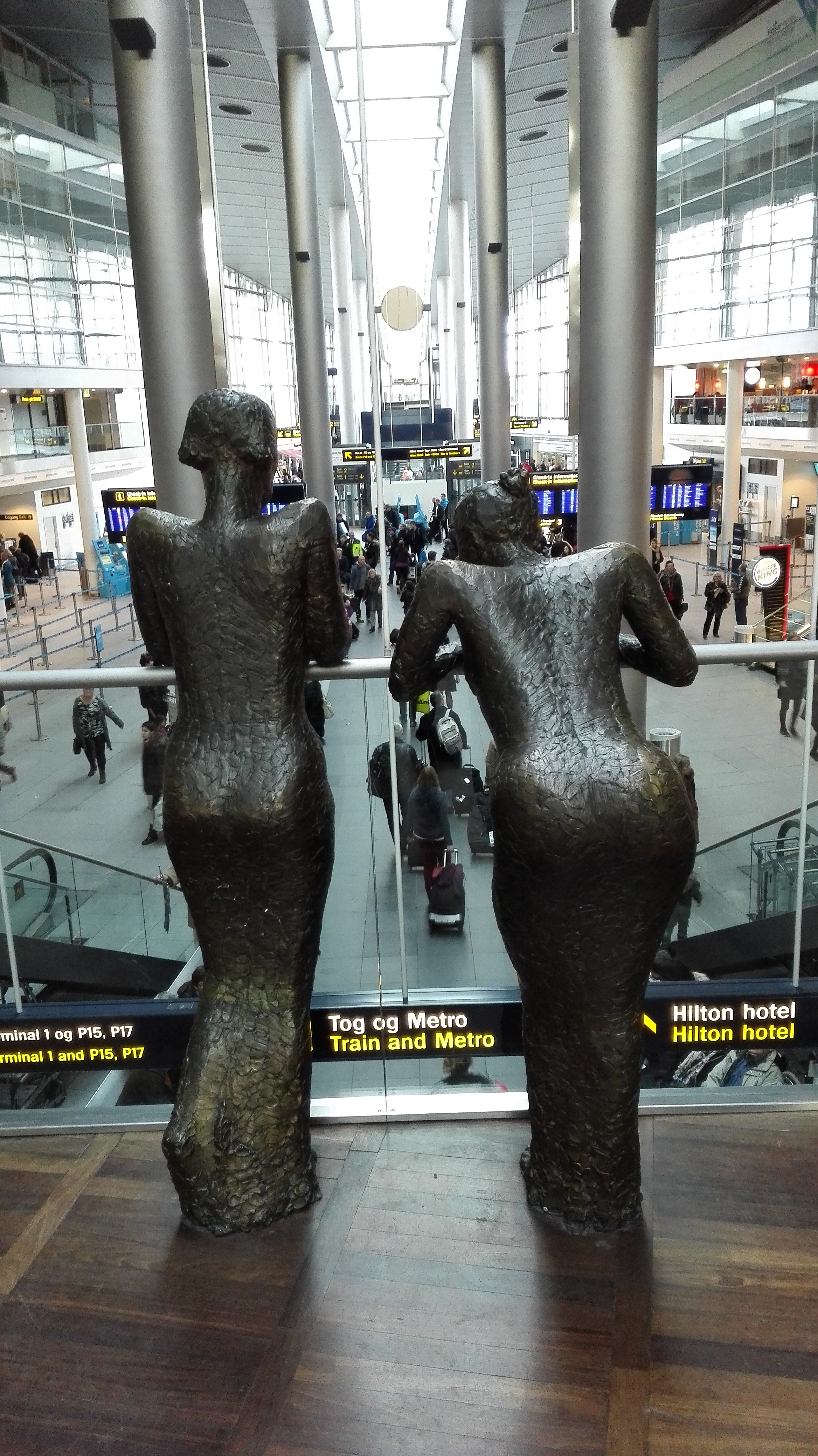 Ganske tidleg på sundagen måtte me setja oss på toget til København Lufthavn, der me fann desse to flotte damene.