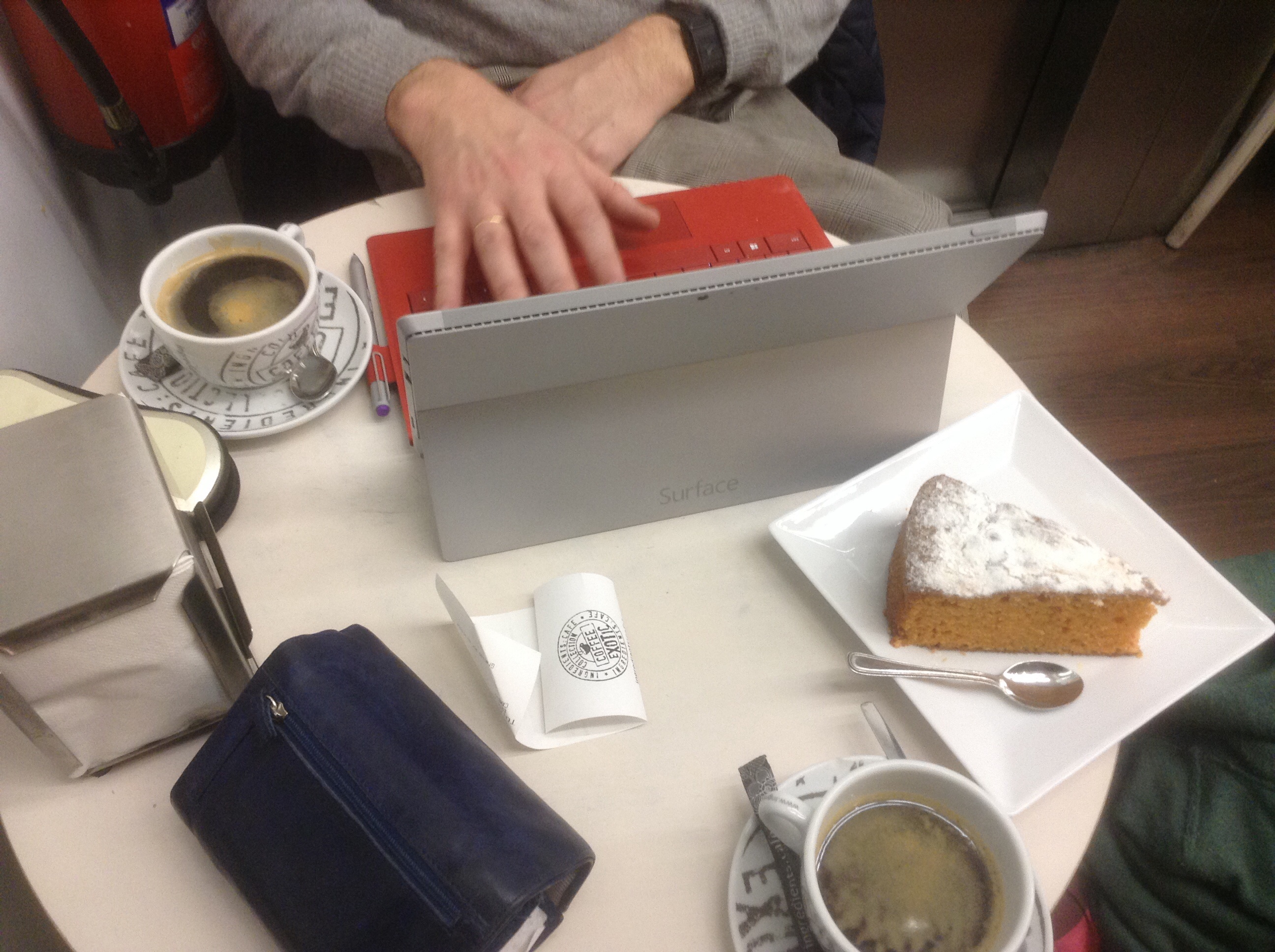 Etter ei lang sundagsvandring i byen, har me nå sett oss ned på ein kulturkafe med skrivesakene våre. Me har nemleg høyrt at det er kunstnarisk å sitja på kafear rundt i storbyane og skriva, så det har me tenkt å prøva ut…