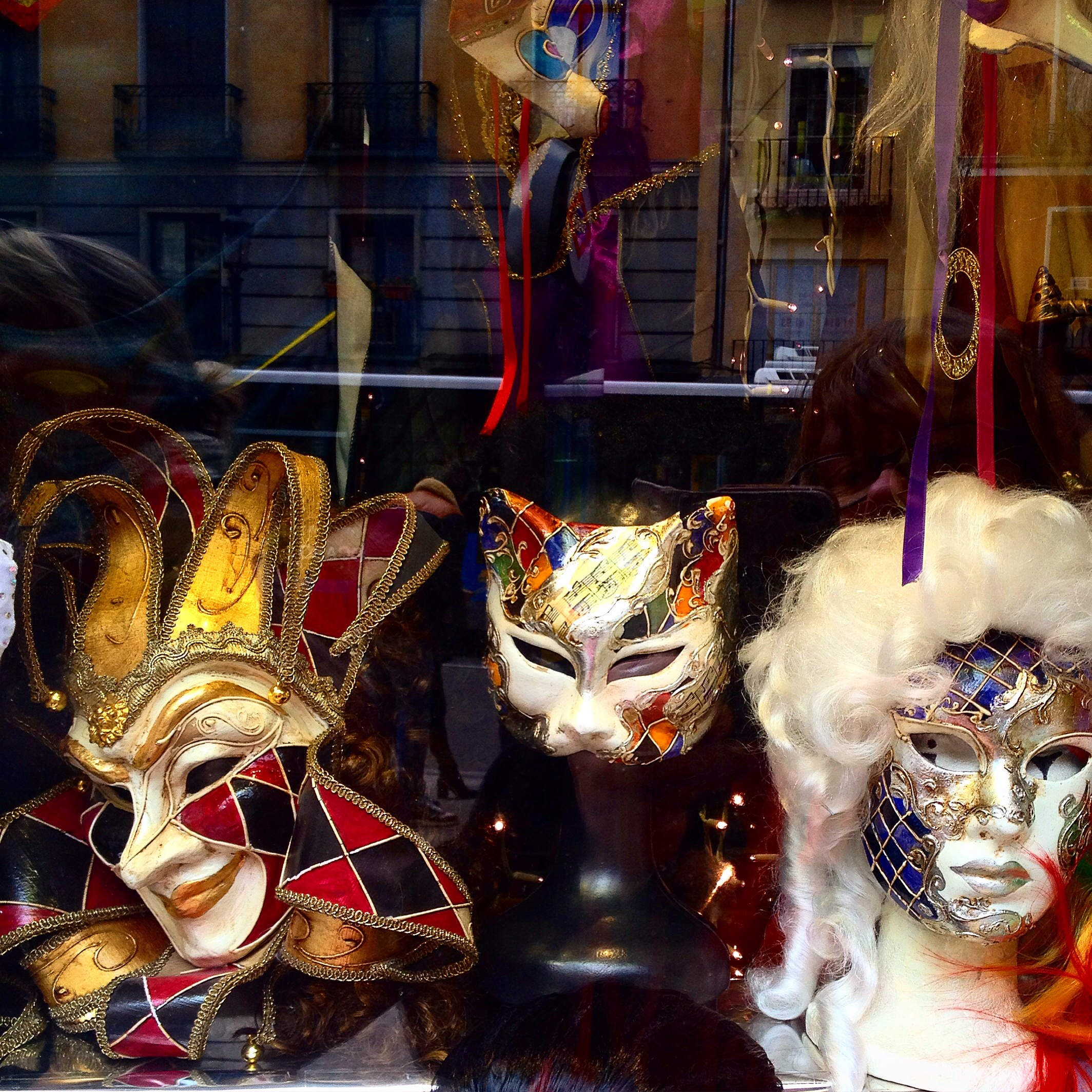 Eg og Hilde var klare for nye spanske eventyr i dag medan mennene våre var på skuletur utanfor Madrid. Det einaste eg visste at eg ville sjå etter var ein Ganeshafigur, ein liten indisk elefantgud. Det har eg sakna i fleire år i RLE- undervisninga. Elles så var eg heilt klar i staden for å oppdaga dagen gjennom Askeladd- metoden, det vil seia å leggja ut i verda med eit nyssgjerrig pågangsmot og vera klar til at kva som helst kan skje, og at det sikkert blir noko interessant. Det vart det. Me har hatt ein fantastisk dag. Me fann ein fin maskebutikk. Eg har alltid lyst på ei fin maske, og tek meg sjølv i å tenkja ut teaterstykke der dei kunne passa inn. Dei kunne vore fine på veggen heime og, men dehar eg litt frå før. Eg var heller ikkje sikker på om eg ville få dei med heim, og så kosta dei litt… Det ende med å fotografera i staden for å kjøpa, men turen kan jo gå dit i morgon og…
