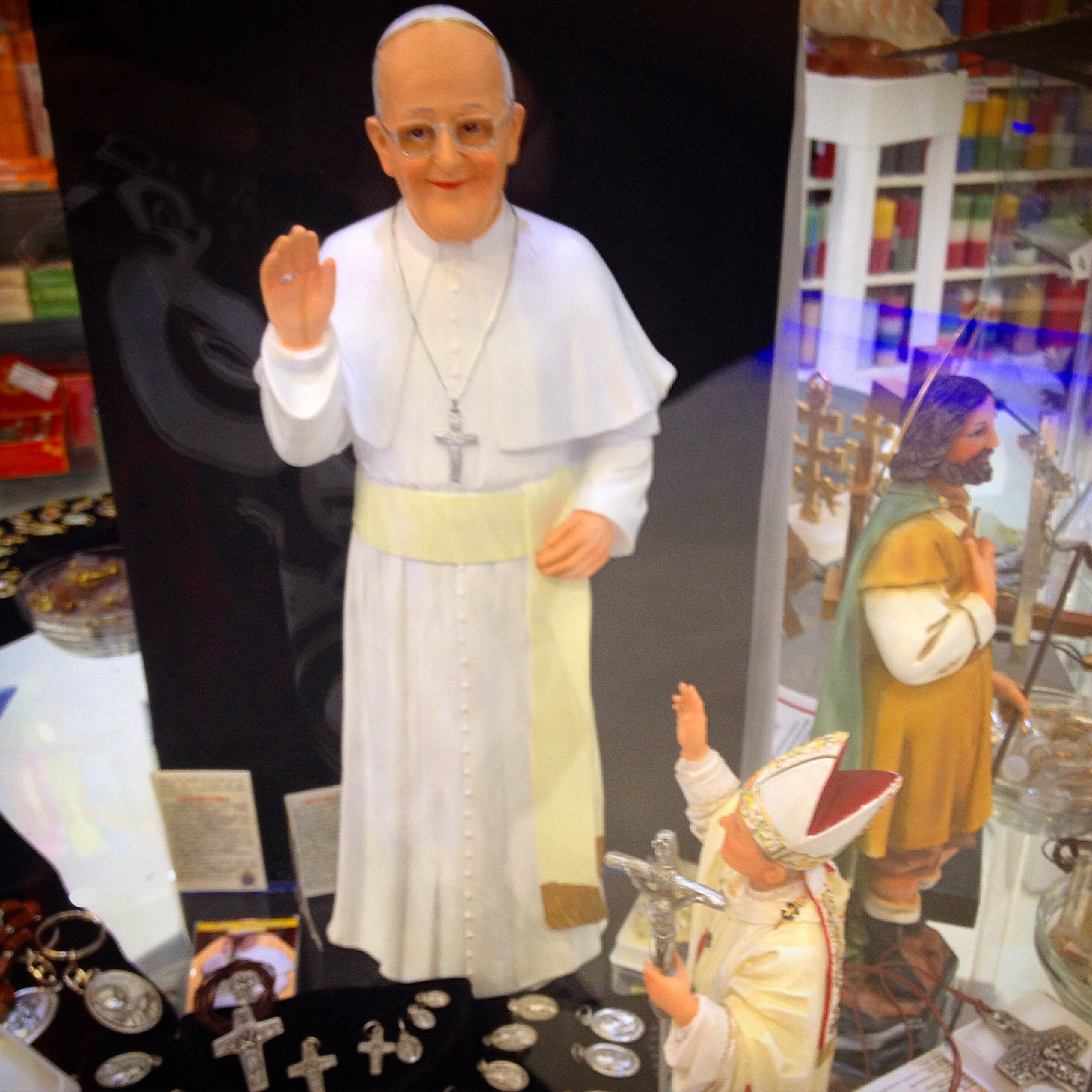 Elles er det alltid ein opning for dei kjøpeglade, kanskje ein Jesus – figur i storleik med ein fireåring, eller ein liten pave til stova ?