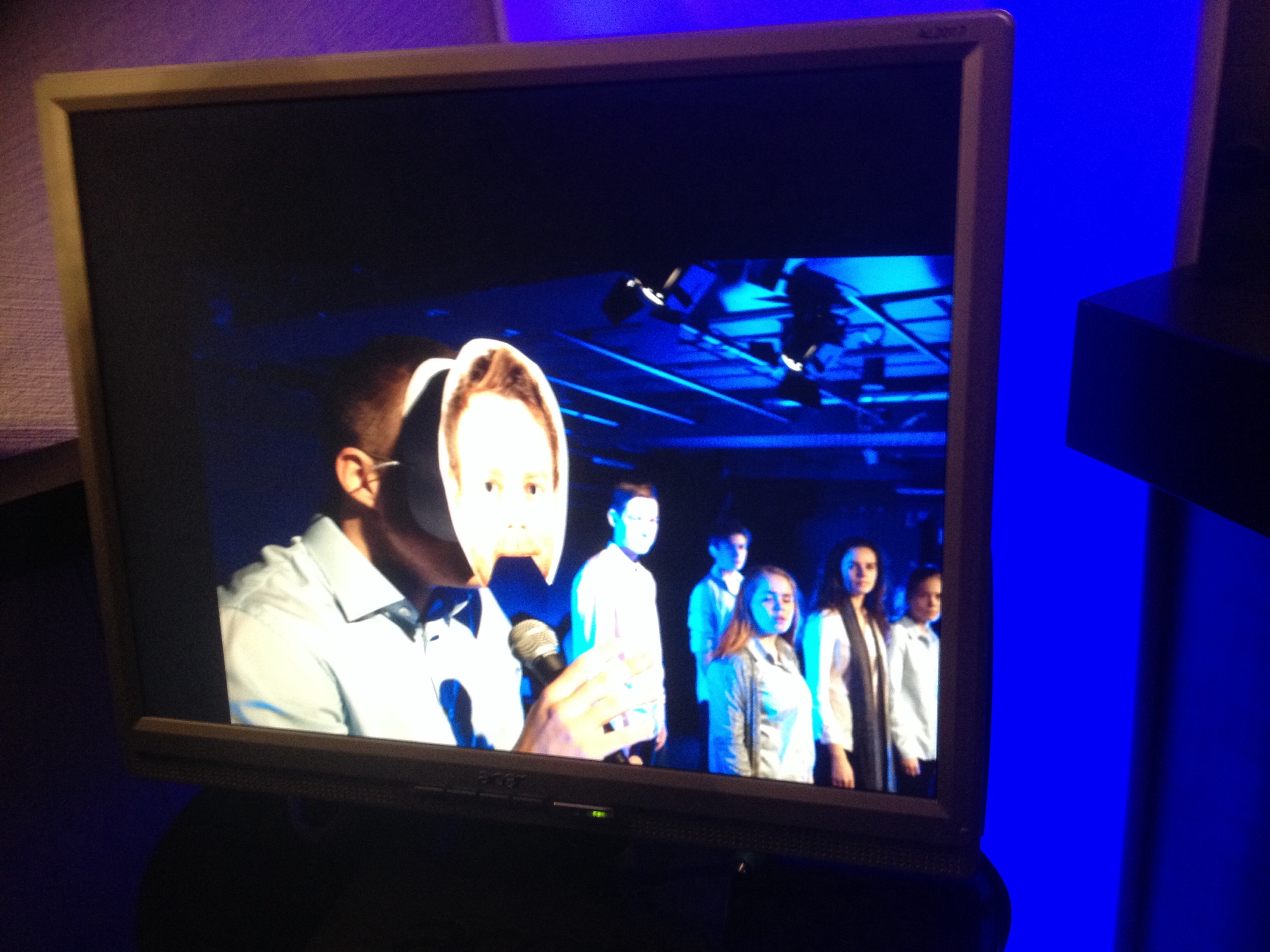Eit av grepa regissørane har gjort, er at dei ulike ungdomane av og til opptrer i rollen som lærar, då med finurlege dialekter, masker som liknar mistenkjeleg på Torbjørn Røe Isaksen, og til dels med utsegner og kroppsspråk som viser at dei eigentleg har forstått fint lite av dei dilemma elevane deira, dei sju ungdomane, står midt oppi. Jenta som ser på oss, nærast oss i første rekkje på dette biletet, er forresten Margrethe Sofie, som har vore eleven min både på skulen og på drama og skapande skriving i kulturskulen. Det gjer det jo ekstra kjekt for både Sunniva og meg at me kjenner ein av skodespelarane. Både ho og dei andre ungdomane gjer ein strålande jobb.