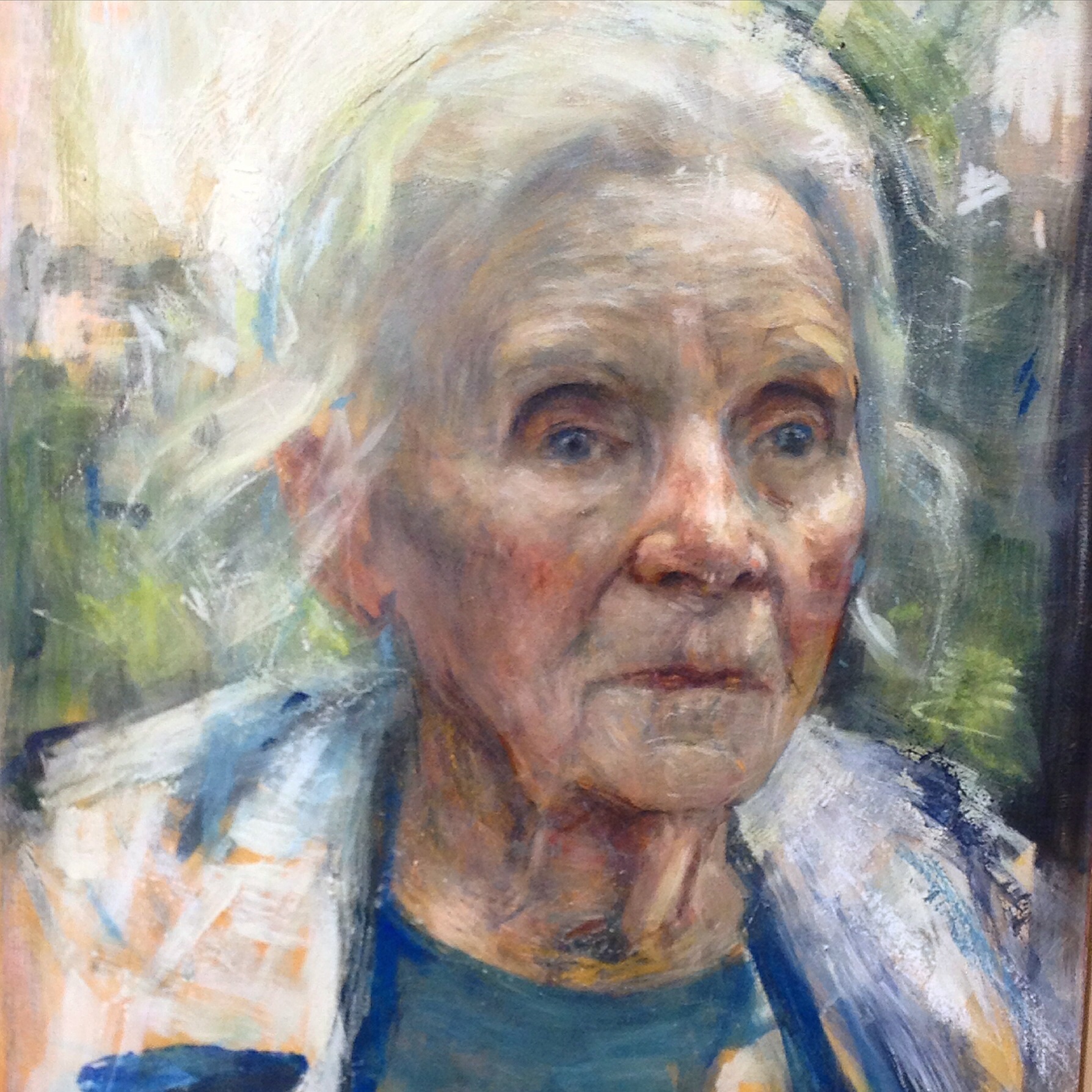 Etter omvisninga vart me inviterte til å stilla spørsmål eller samtala. Eg lurte på om eg hadde nokre kloke innspel som kunne gjera oss til bestevenner for resten av livet, men fann dessverre ingen. Eg vart mponert og betatt over både bileta, tankane bak og kunstnaren sjølv, og eg høyrer gjerne på han fleire gonger. Eg har lenge hatt stor sans for portretta han lagar.