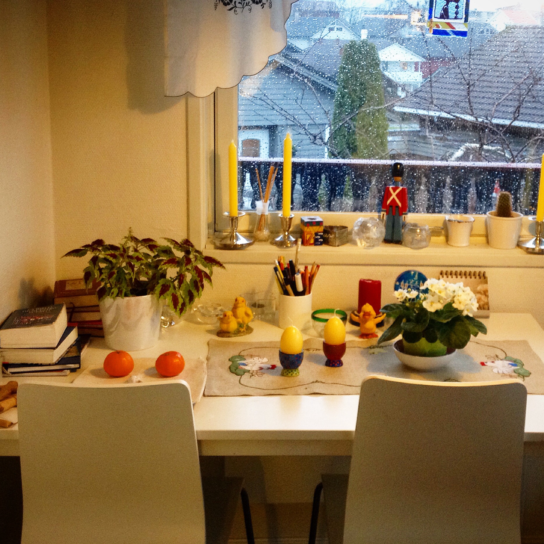 I dag har eg prøvd å pynta heimen litt til påske, når eg samanliknar med interiørbloggar så blir eg litt lattermild av meg sjølv. Eg har for eksempel aldri heilt fått taket på minimalismen.